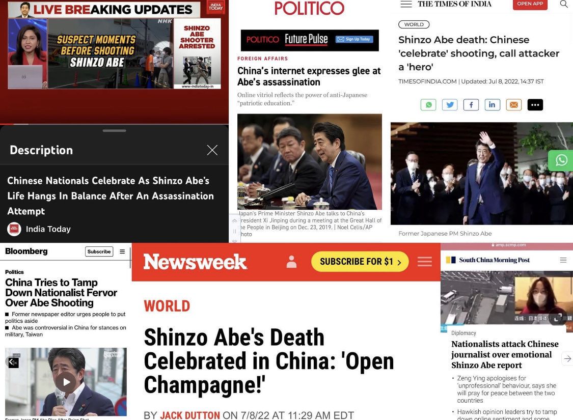 国际媒体对中国网民庆祝“安倍遇刺”的报道(作者提供)