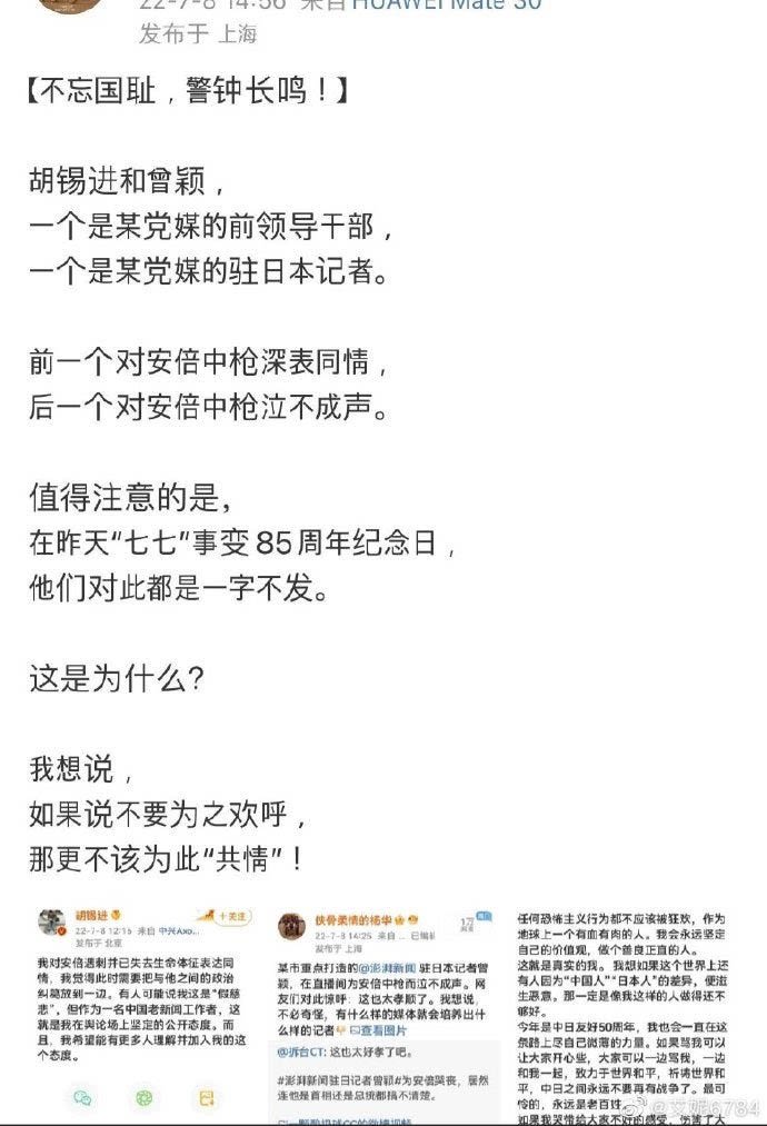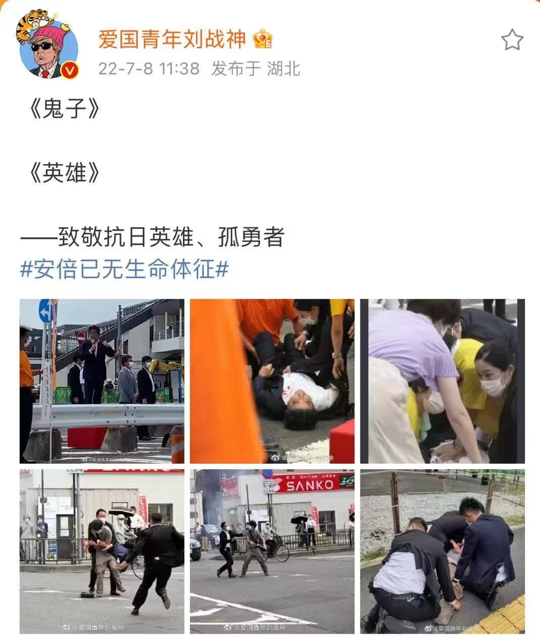 7月8日,日本前首相安倍晋三在日本奈良市街头为议员助选时遭枪击,最终因伤势过重不治身亡。安倍遇刺的消息传开,国际间无不震惊。然而,在这一片哀悼声浪中,中国大陆却有网友对这名67岁的日本政治家遭血腥暗杀的消息,表示幸灾乐祸,甚至狂欢庆祝。