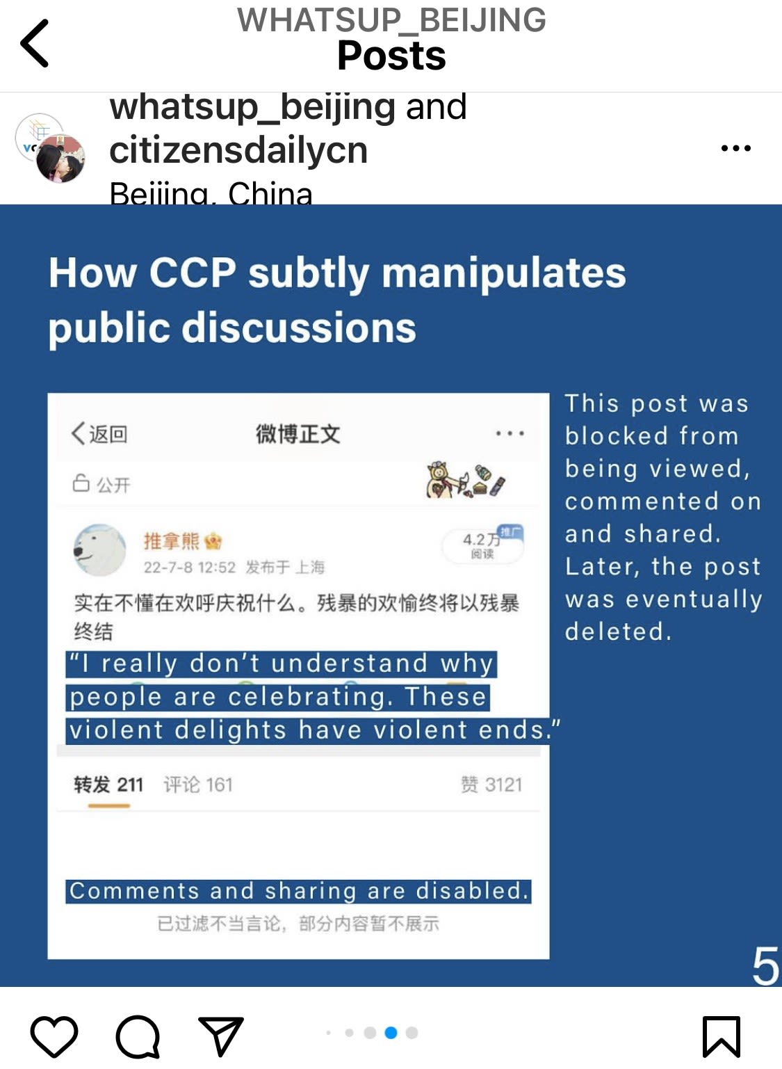 社媒披露有网友因唱反调帖子被封禁(作者提供)