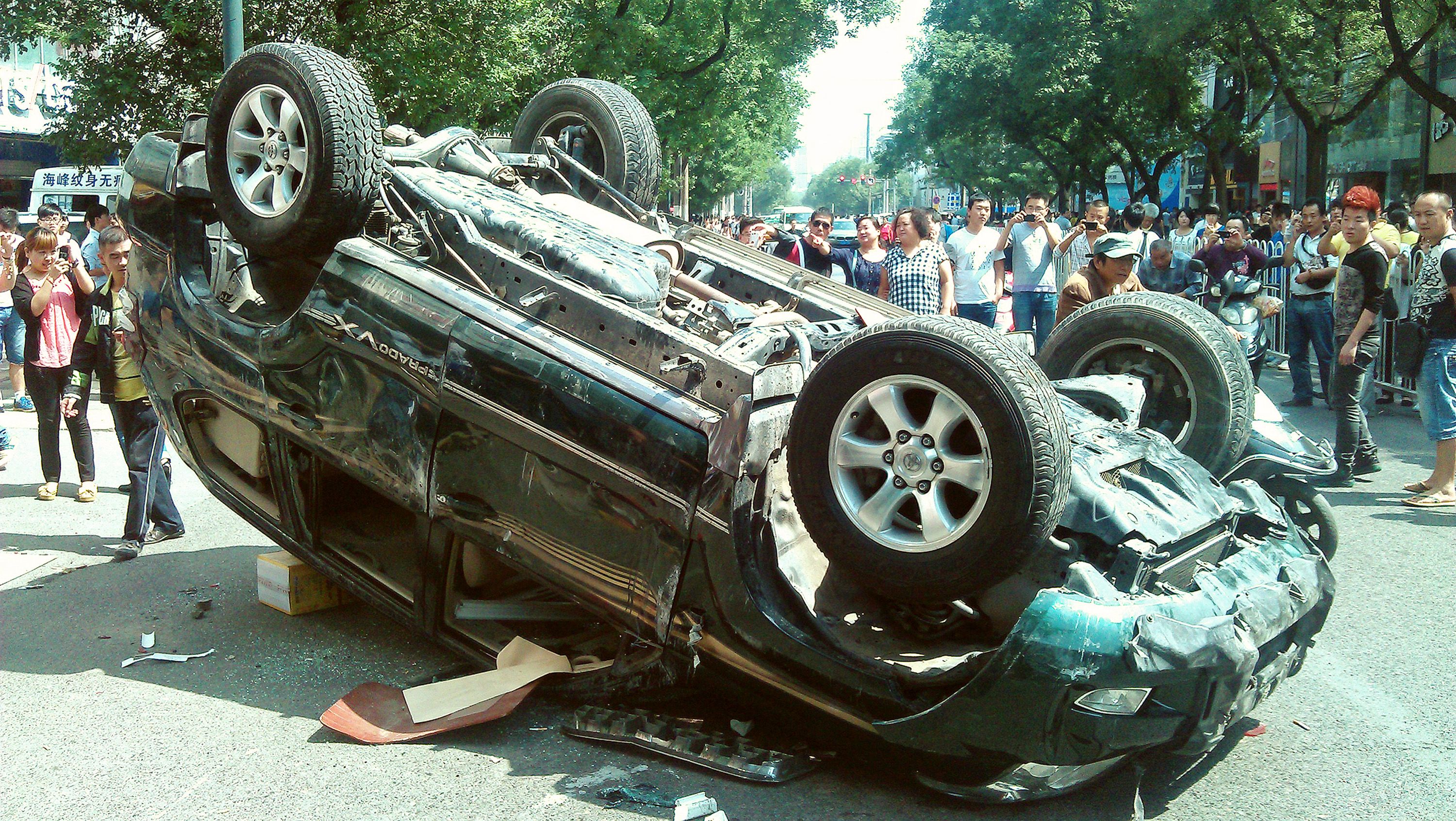 2012年西安的一次反日游行中,激动的民众砸烂了一辆日系车( AFP / AFP PHOTO )