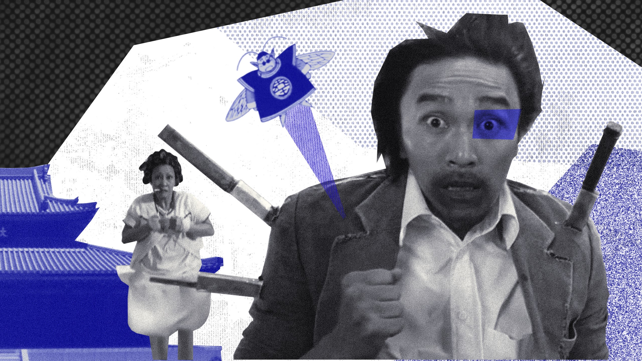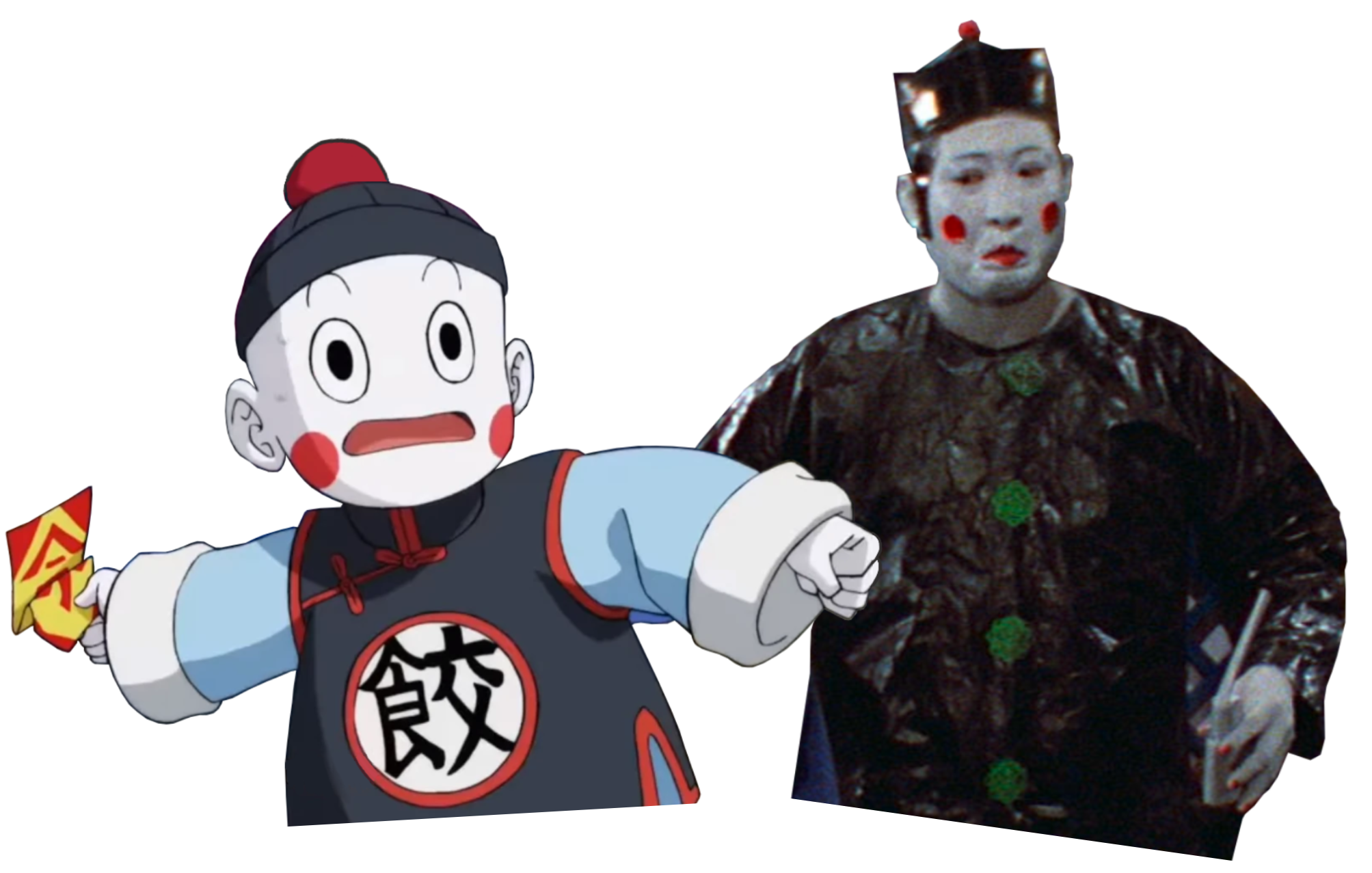 七龙珠角色饺子和洪金宝在电影《人吓人》中的装扮(网络图片)