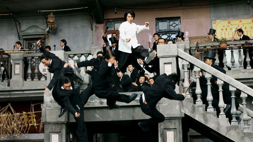 如果李小龙的格斗电影影响鸟山明,那鸟山明的《七龙珠》也在影响李小龙迷周星驰。 周氏不但在《唐伯虎点秋香》明刀明枪向地下发出“龟波气功”,令一群女生升天;《功夫》亦仿照《七龙珠》“天下一武道会的”空中格斗场面,跟对手打得 飞天遁地,最后周星驰穿过云层、从天而降一手如来之掌镇伏火云邪神。 将漫画化的格斗场面恰到好处融入电影难度很高,靠是武术指导的功力,而《功夫》操刀者无独有偶是《醉拳》的导演袁和平。