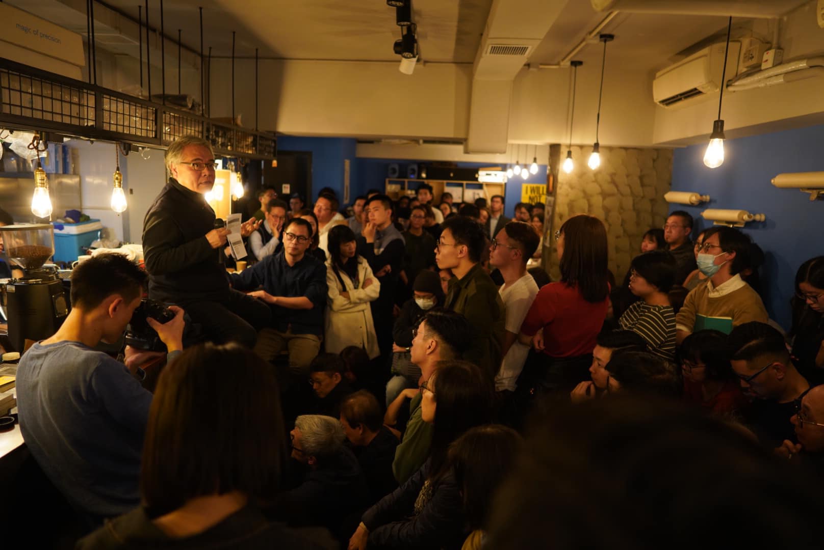 “沙龙有一个大家经常忽略的特点,那就是不可复制。文化沙龙渐有回响,不少友好团体会邀请我帮忙策划,但是场地本身有的氛围是无法复制的。如果你来过Brew Note,在那里讲者置身在吧台,刚好是长方形咖啡馆空间的中心点,面对三面听众。同时文化沙龙创造出仪式感,我定期每月一次沙龙,拒绝直播,沙龙讲求临场感的,听众要亲身到场,西装骨挺的上班族下班过来,要席地而坐。那就是一种仪式感,听众知道那是一错过就无法再来的事情,是值得期待的,不来就要等两星期后,我们上载录影到网上重温。”