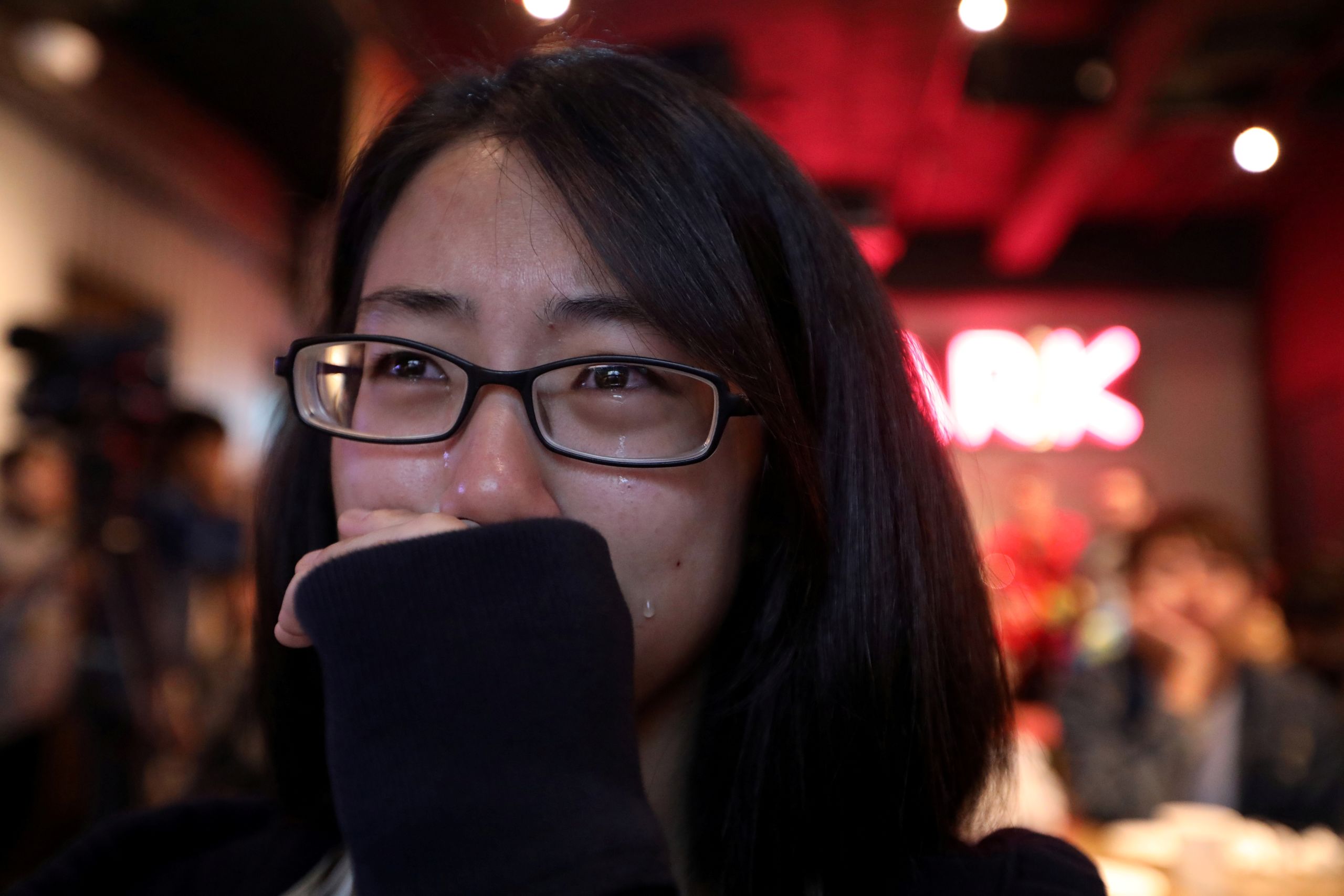 图片:2018年11月24日,支持婚姻平权的民众在公投开票当晚伤心落泪。(图:REUTERS/Ann Wang)