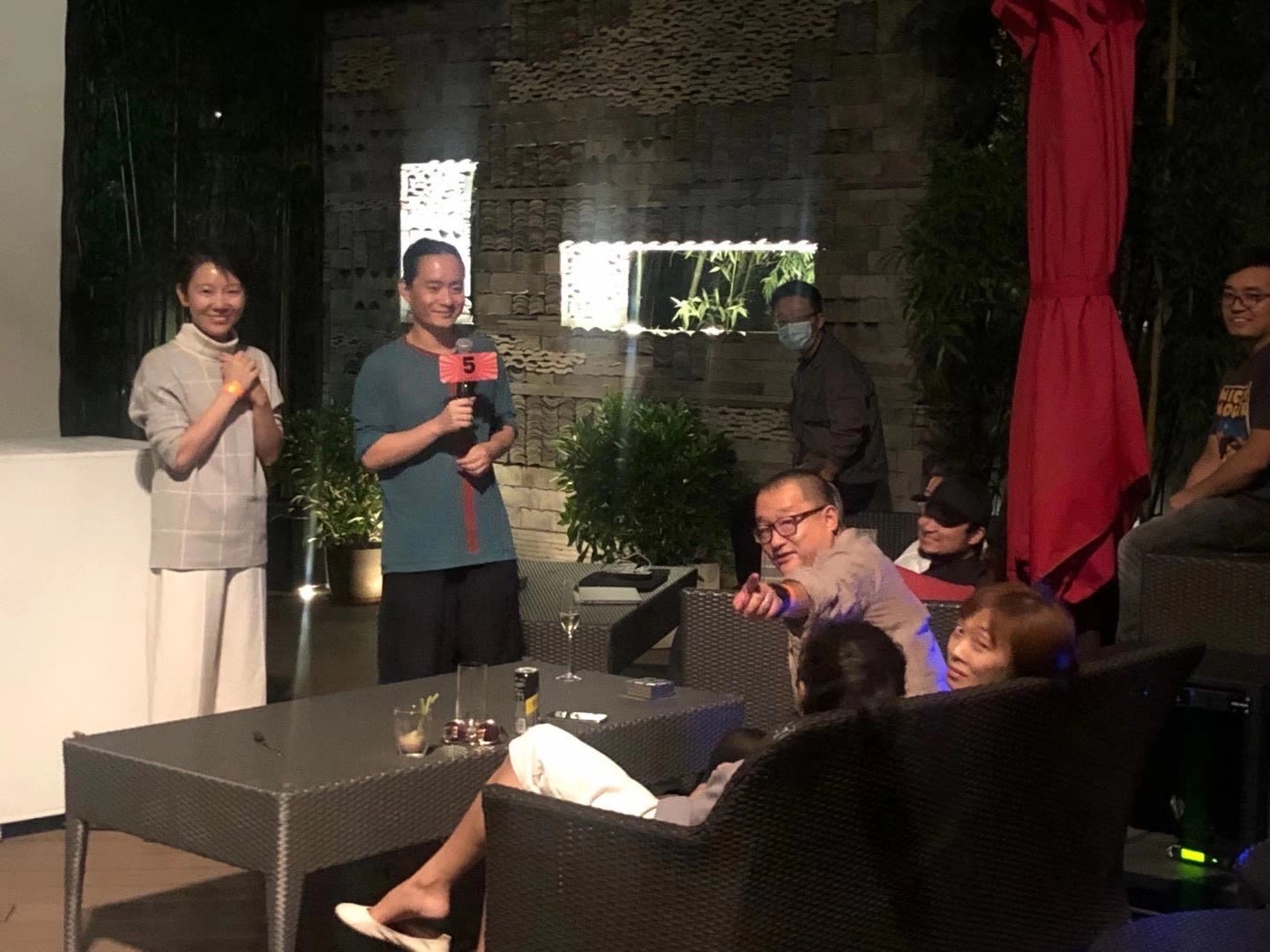 2020年,三里屯《国产艺术凌凌捌》放映现场,中间为王嫣芸。(受访者提供)