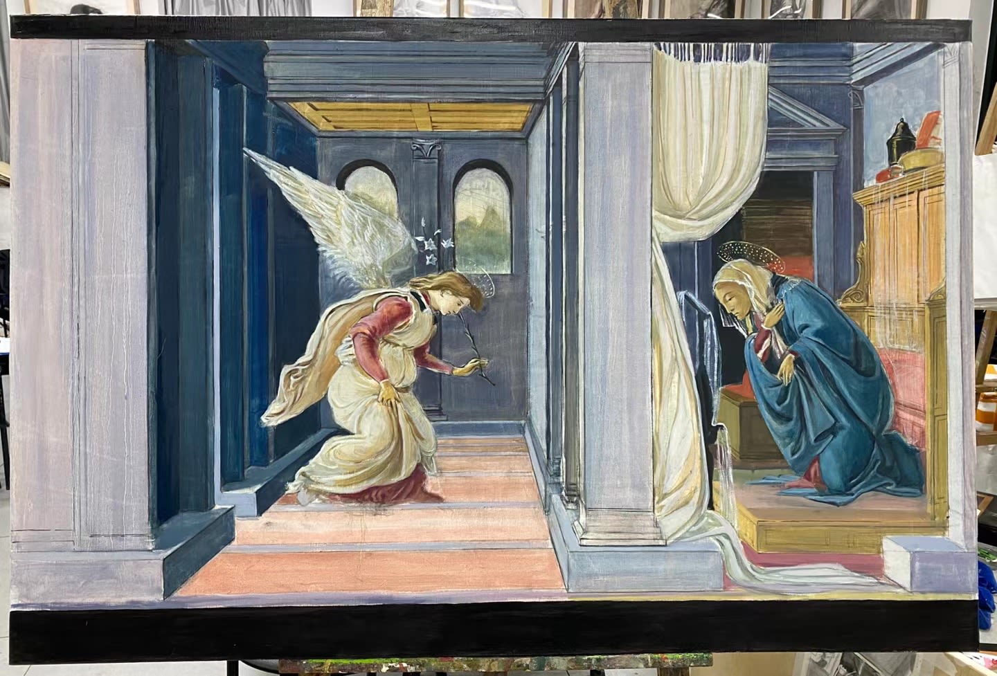 王嫣芸临摹的圣母报喜画。(受访者提供)