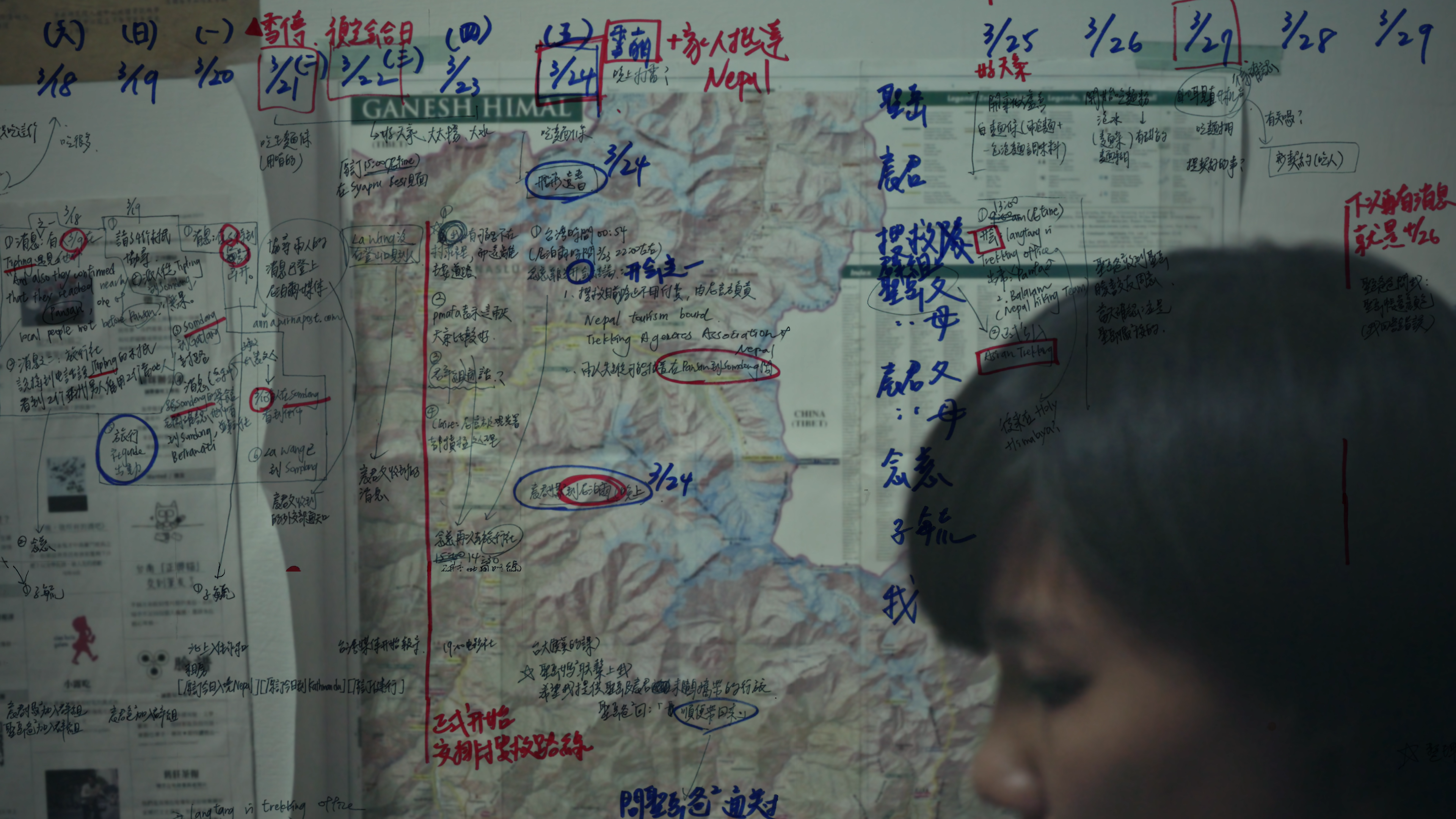 剪辑过程,最让他陷入难题的主要是梁圣岳的片段,不仅因为前期拍摄缺乏意识与方法,素材杂乱无章,也牵涉到还想说得更清楚,却有种过于给予交代的不适感。他举例,当故事从与梁圣岳日常转至尼泊尔,原先其实是采用梁圣岳住院时所写的文字,但罗苡珊却总感觉有点怪,“一方面,那是圣岳很私人的东西;另一方面,这好像是试图替圣岳向观众去解释什么。那个工具性太强了。”