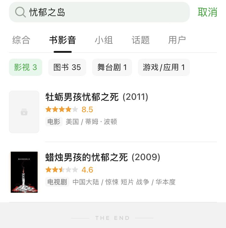 《忧郁之岛》电影条目已搜索不到 ( 图片来源:豆瓣截图 )