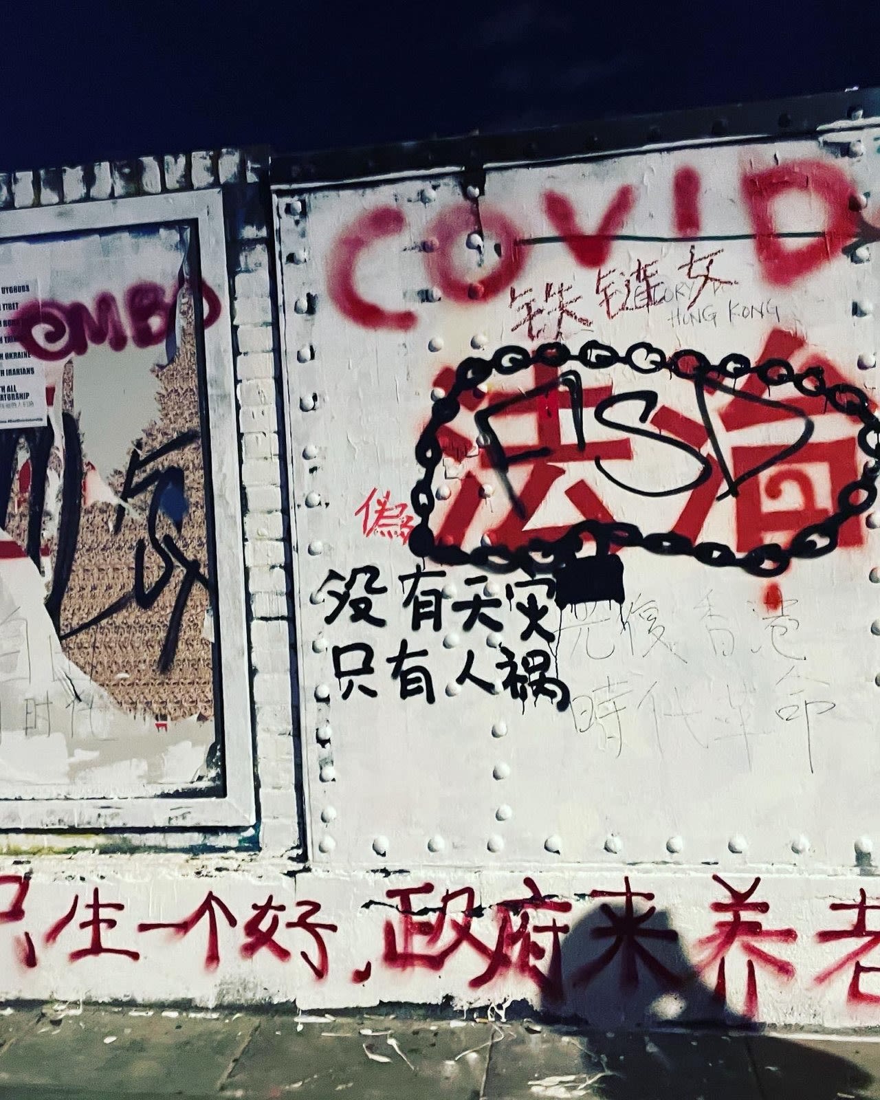 成立于白纸运动期间的在英中国留学生组织China Deviants (中国反贼)在事件发生后,也有积极跟进后续事宜,包括鼓励大众到场进行二创、三创,并张贴印有与中国社会主义核心价值观相同字体的“自由、勇敢、翻越、高墙”的插画,以表达对摆脱审查、对言论及艺术自由的追求。成员Apple认为,原作品为海外的中国群体带来创伤,“感觉像一秒回到中国,那种窒息感、那种被文字的红线绑住脖子的感觉。”她透露,希望伦敦市议会长远可以给予空间给中国社群作画,让艺术走到街头之余,亦可让大家有途径去发声。