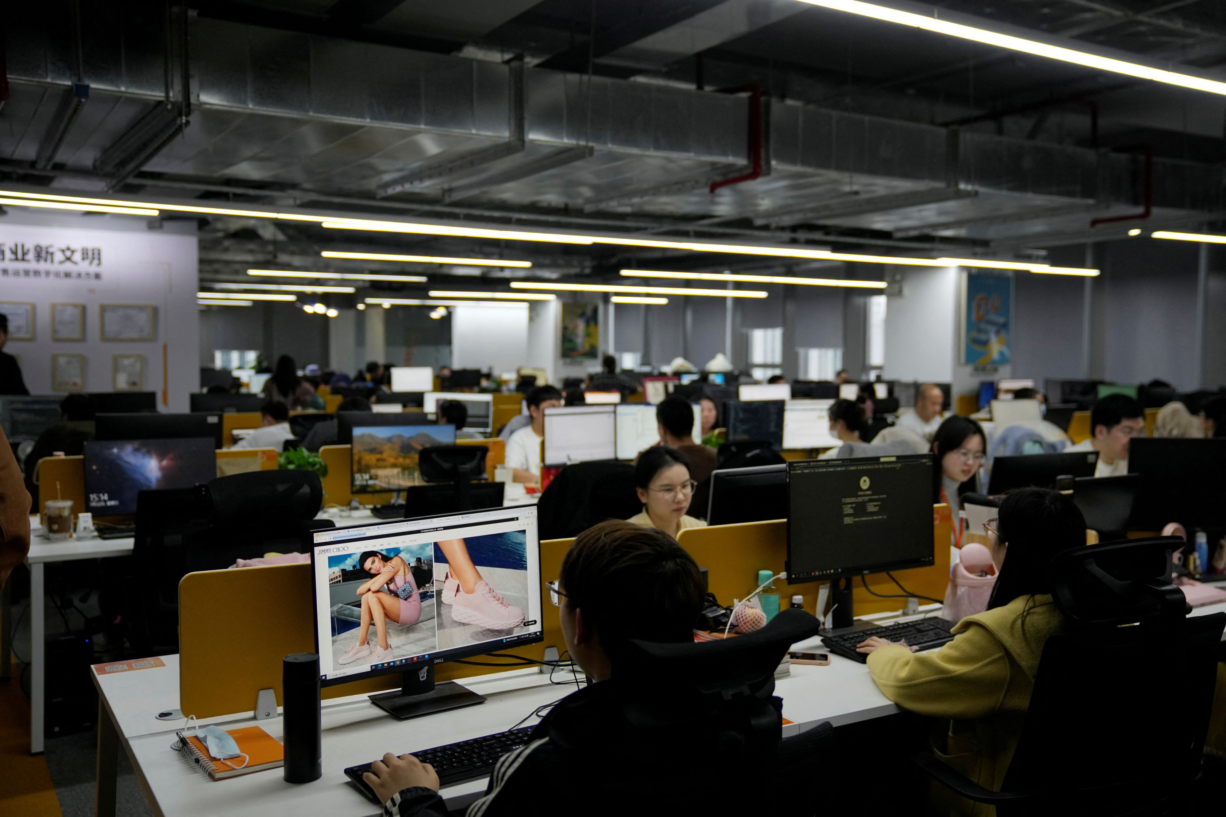 2023年,上海一家电子商务公司的工作人员在办公室工作 ( REUTERS / Aly Song )