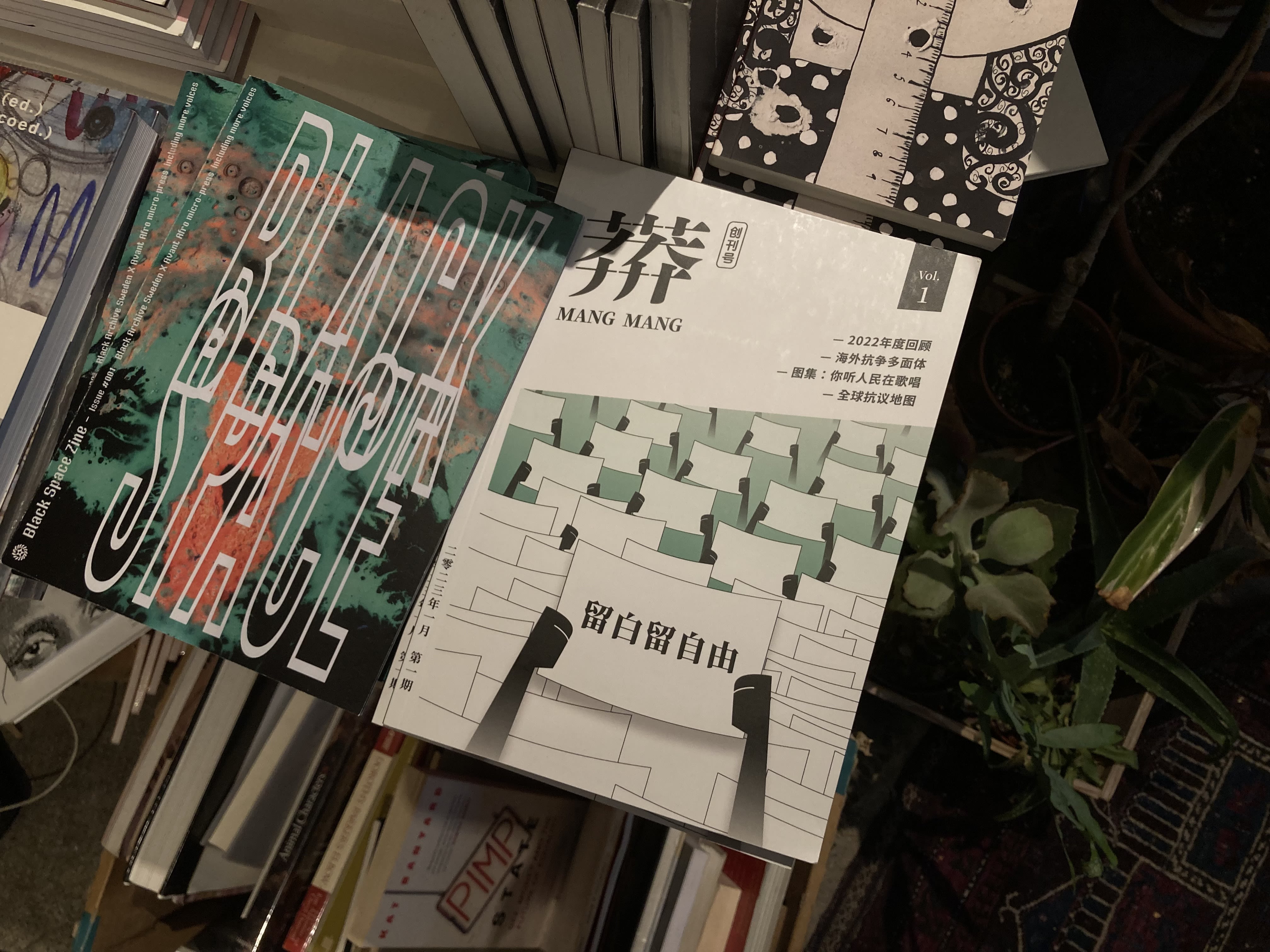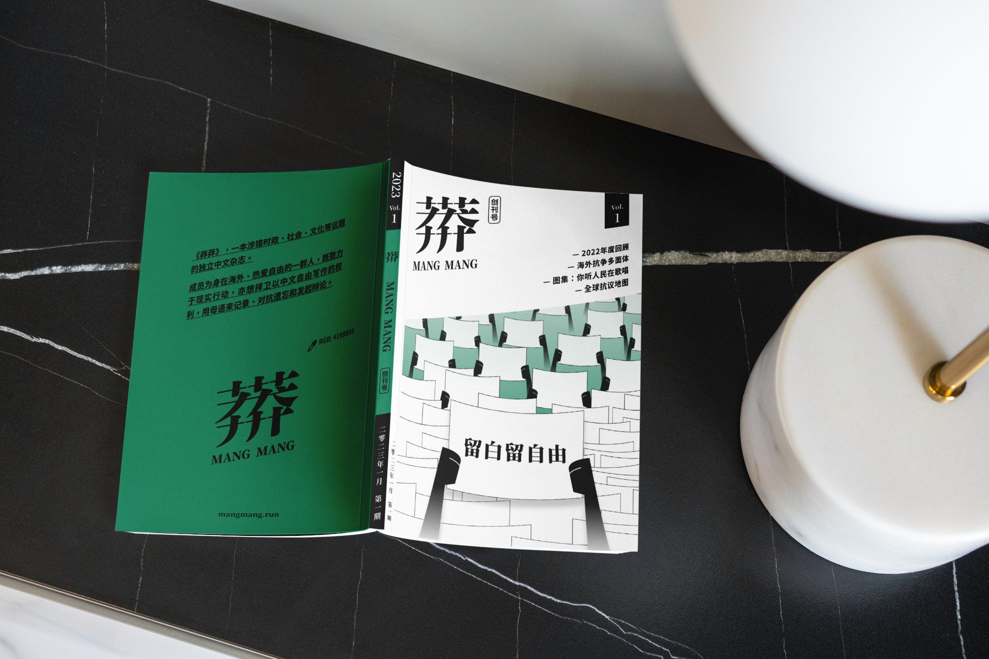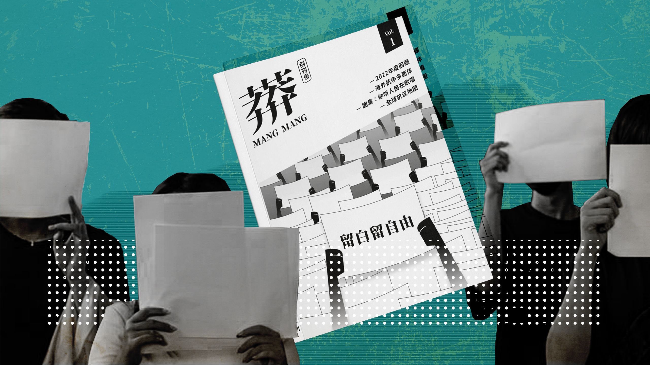 在柏林一间放满各类型独立杂志及一二手书籍的书店里,摆放了一本在售的中文独立杂志,创刊号的封面画了一群手上举起白纸的人,其中一张写上了“留白留自由”。这本名为《莽莽》的杂志于2023年发行第一期,除了线下发售之外,亦有线上的网站,打着“一本不受审查的中文杂志”的旗号。