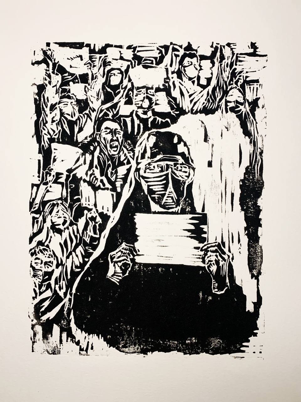 版画《白纸革命》 ( 作者 / 王春兰 )