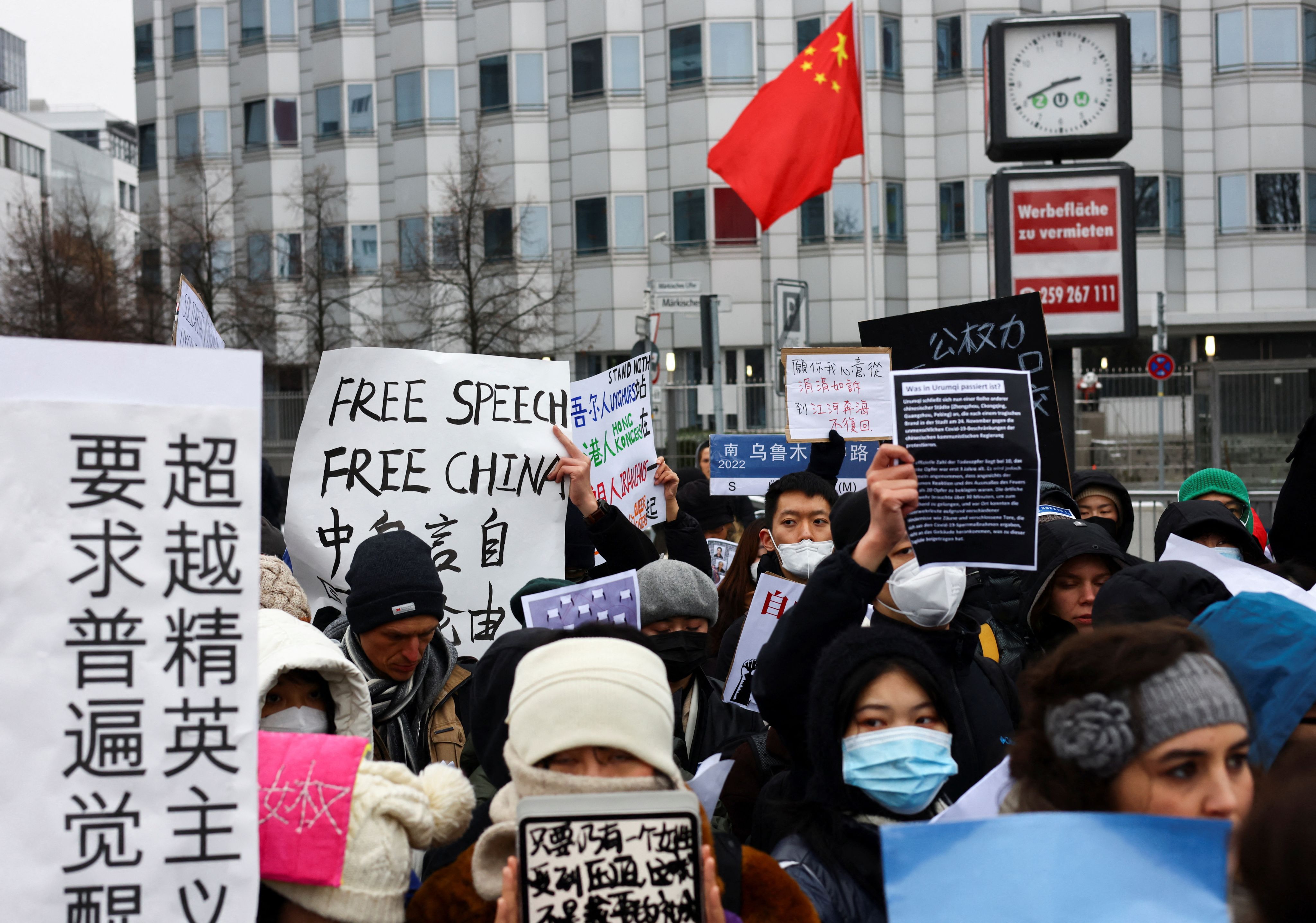 2022年12月3日,柏林的一场声援“四通桥勇士”的集会 ( REUTERS / Christian Mang )