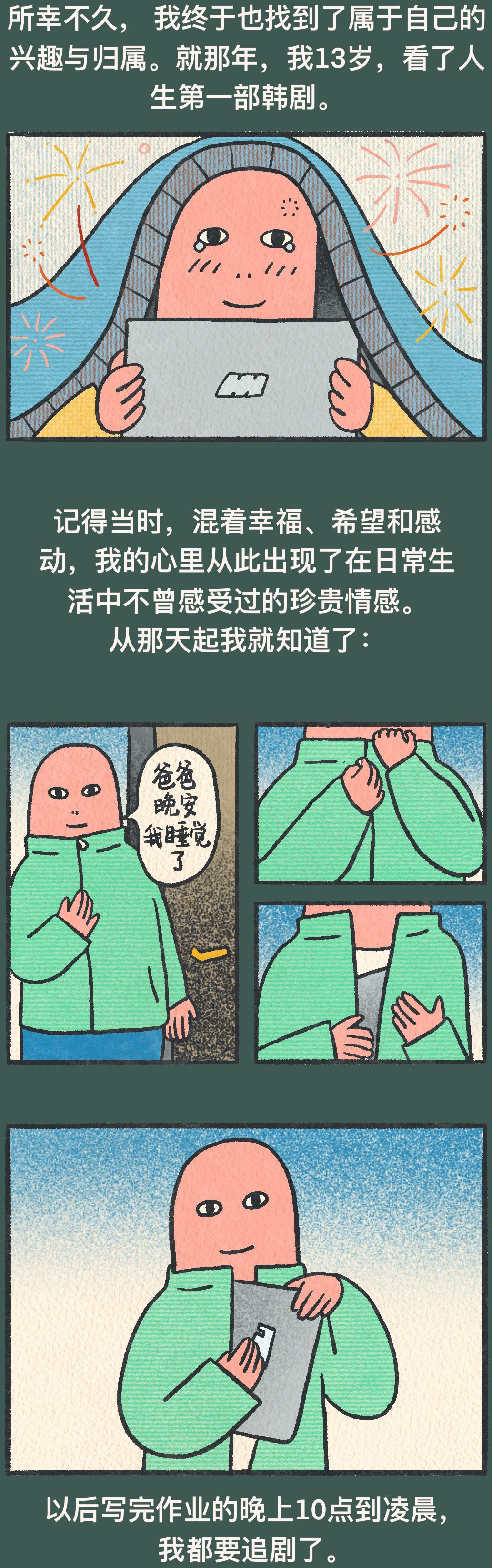 大家喜欢看韩剧吗?漫画家贝子从13岁起,就开始自己的韩剧之路。从初中到现今工作,韩剧几乎陪伴了她一半的人生。从百度网盘到Netflix;从总是像犯罪一样偷偷摸摸地看,变成可以和朋友家人一起舒舒服服看大屏。多年来,贝子觉得韩剧给她的影响,比起学校,甚至父母还要多。这些剧里剧外的人物和故事曾经告诉过贝子她的痛苦来自哪里;也让她了解自己敬佩,厌恶,同情怎样的人;在她脆弱的时候给过她无数次的鼓励。本篇贝子想和大家分享她与韩剧的故事。