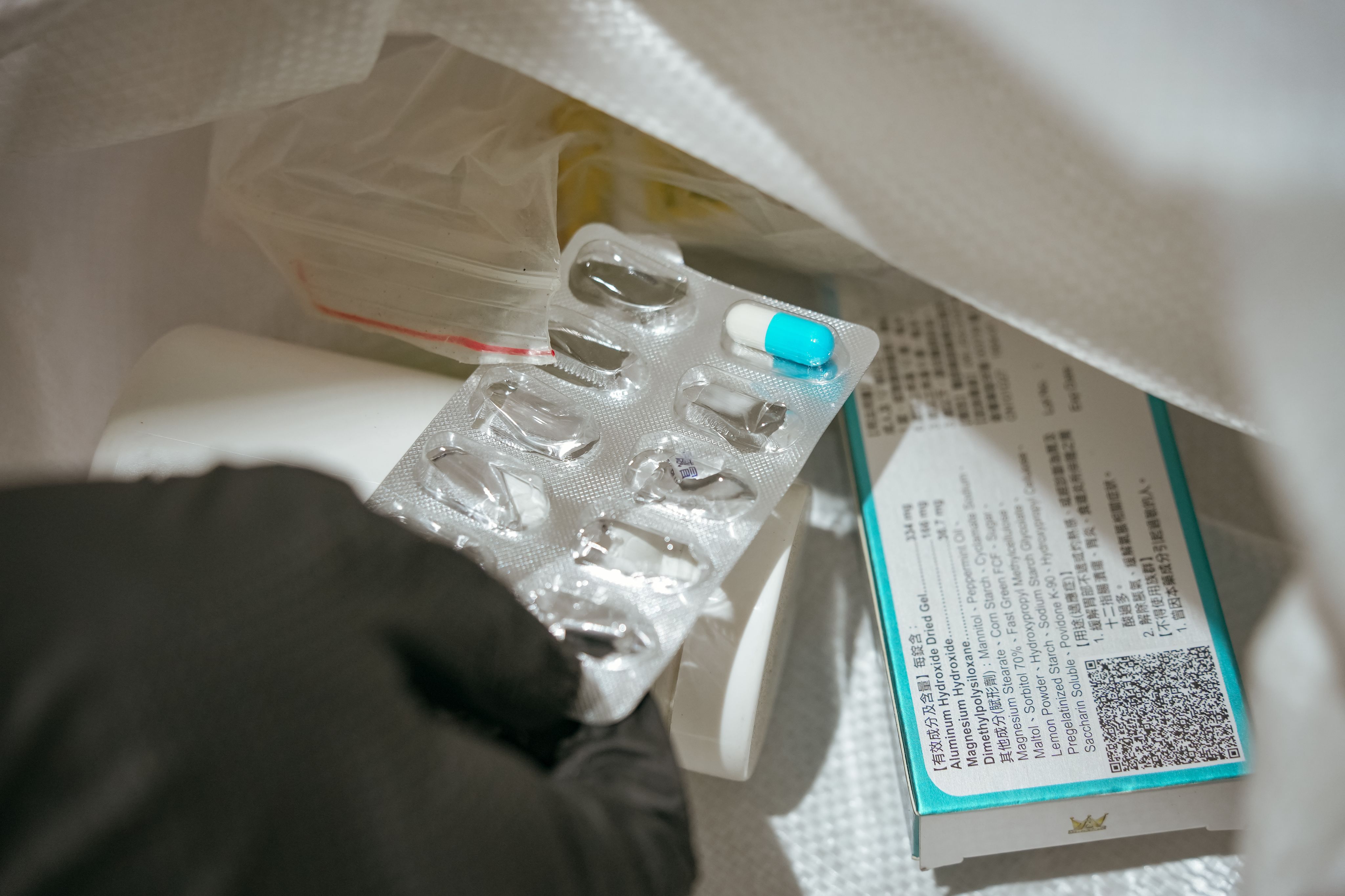 不少孤独死的中壮年男性,生前过度依赖止痛药物。有一次,团队用了数个大麻袋来装现场的止痛药物 ( 摄影 / 朱鉴汉 )