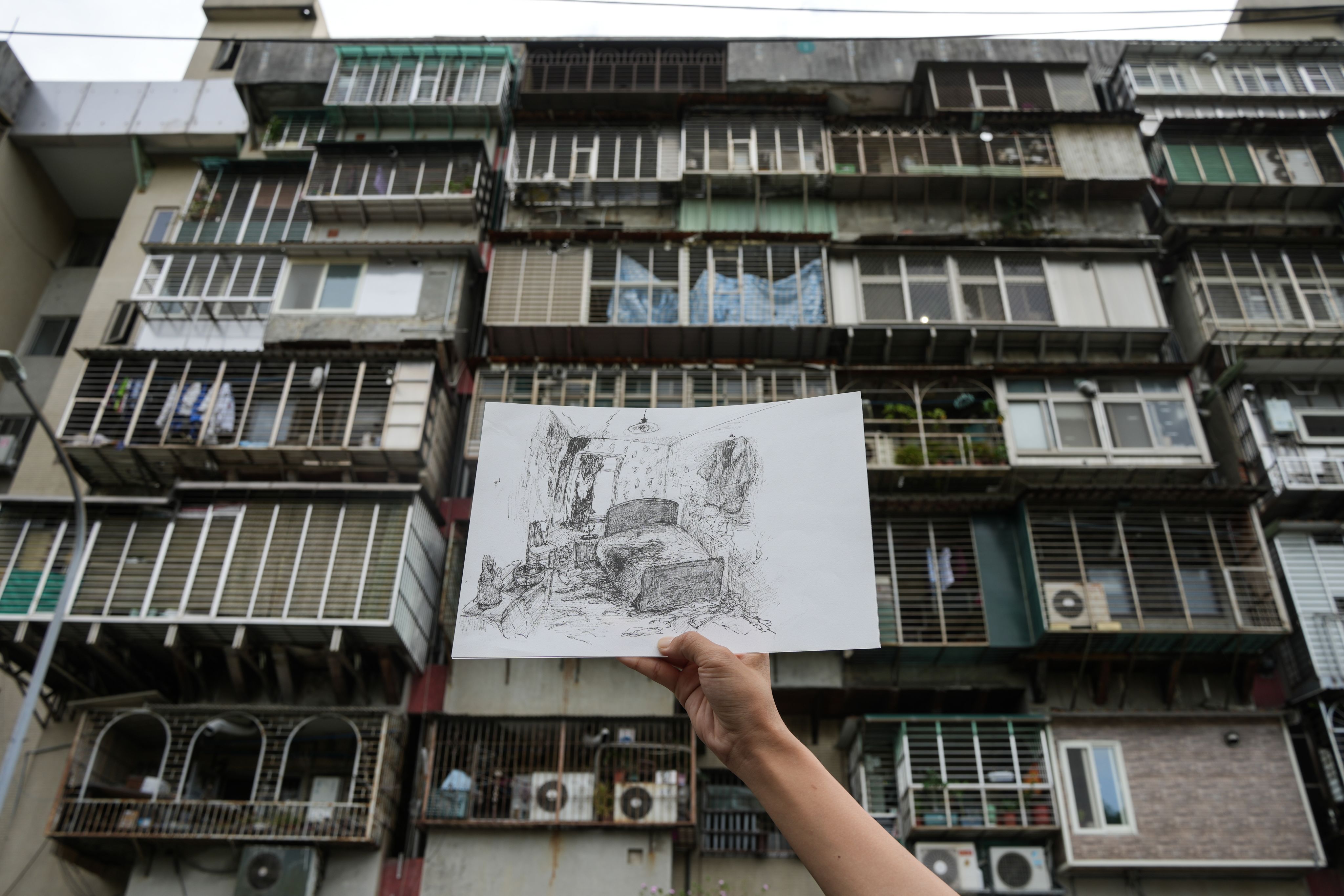 “艺术有两个重要的沟通目的,第一是跟社会沟通,第二个是与自己的内在沟通。”他随即展示了一幅现场的素描画给我看,画中的内容是小套房,布置简陋,单是观看染有血迹的单人床,大概知道死者生前的状况。“我们为了保留生者跟逝者的隐私,除了回报家属和工作进度的特定目的以外,我们不会拍照的。这幅画原本的照片,是我随便在网路上找的,并没有血迹,构图非常简单,只有一张床,一件衣服,破旧的窗帘等元素,却是我们在现场很常经历的画面。”他如此说。