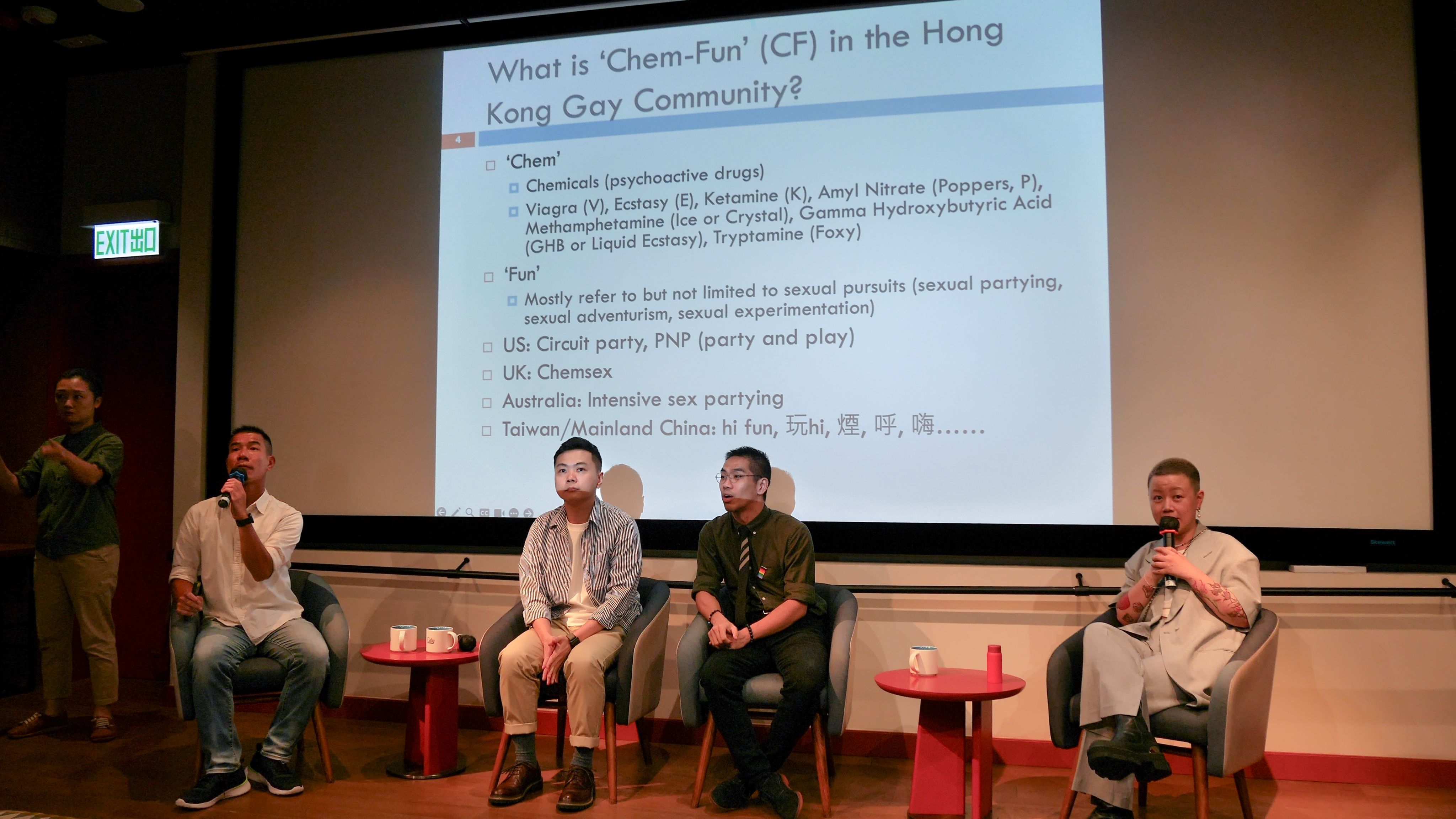 用药性爱早已于欧美社会的男同性社群间存在,而欧美社会早于 2000 年代亦有相关研究,亦尝试以社会文化的角度切入研究。刘凯亮就读研究院的时候已经开始研究同志议题,期间发现香港男同志社群兴起Chemfun 现象,于是一马当先投入研究。 “我希望减低主流社会对用药的污名化,推广缓害的介入手法,协助男同志处理困境。”
