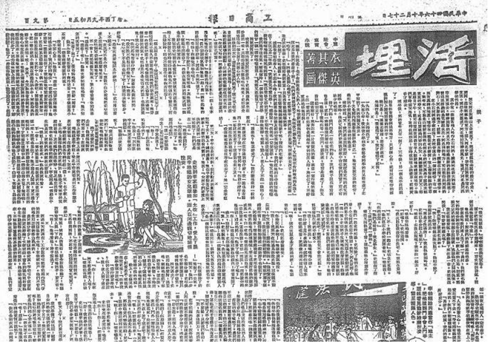 1957年倪匡于工商日报上以“衣其”为笔名,连载小说处女作《活埋》。 (工商日报)