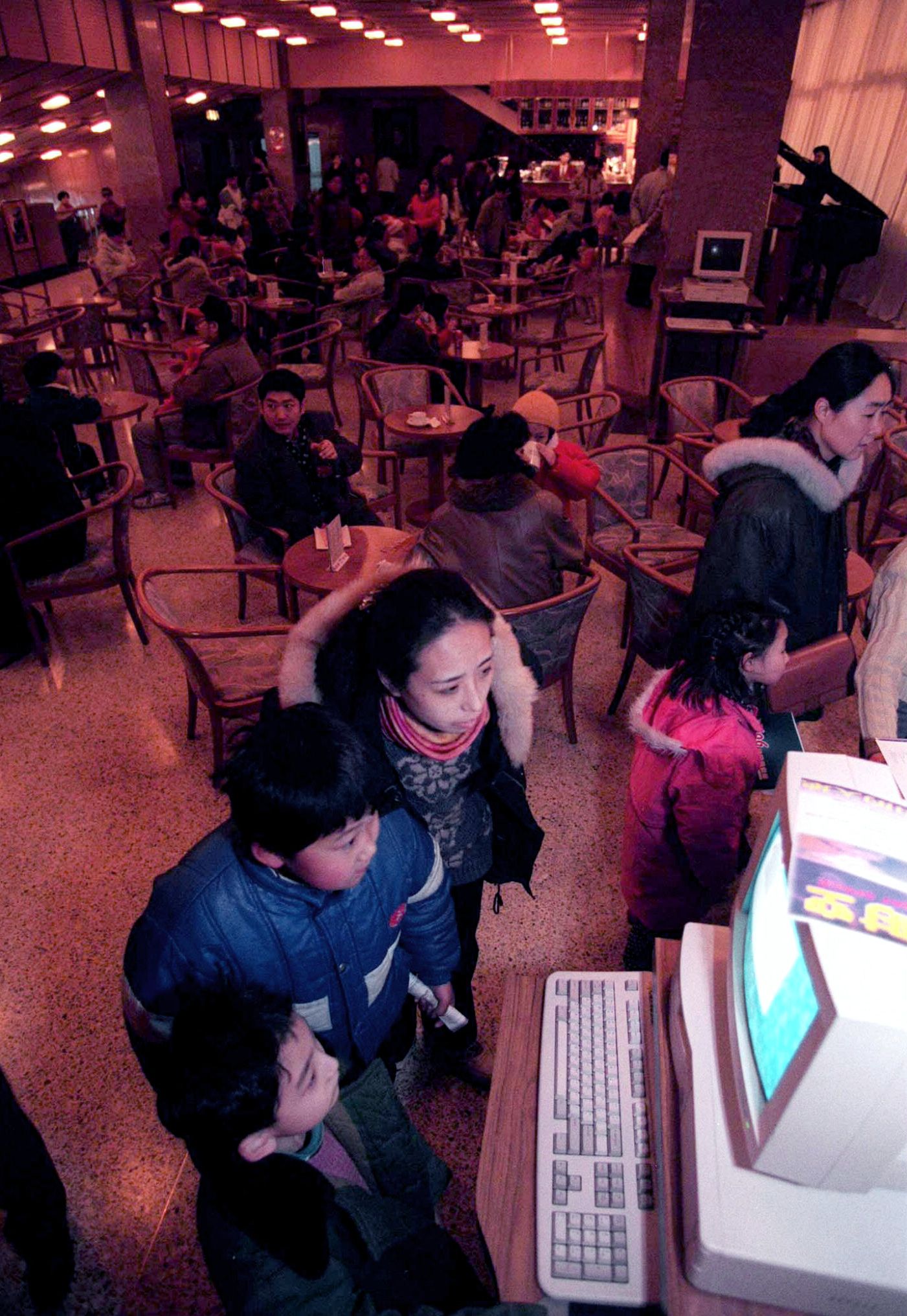 北京小孩在父母的陪同下观看中国第一家“网络咖啡馆”提供的服务 (图片来源:路透社)