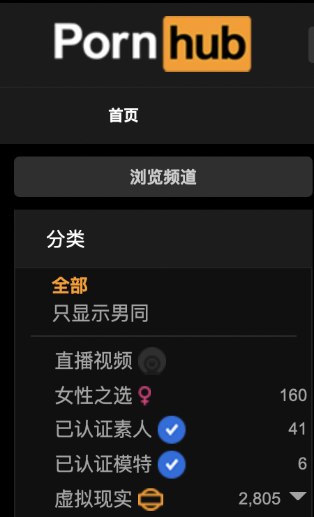 pornhub分类中的“女性之选”标签