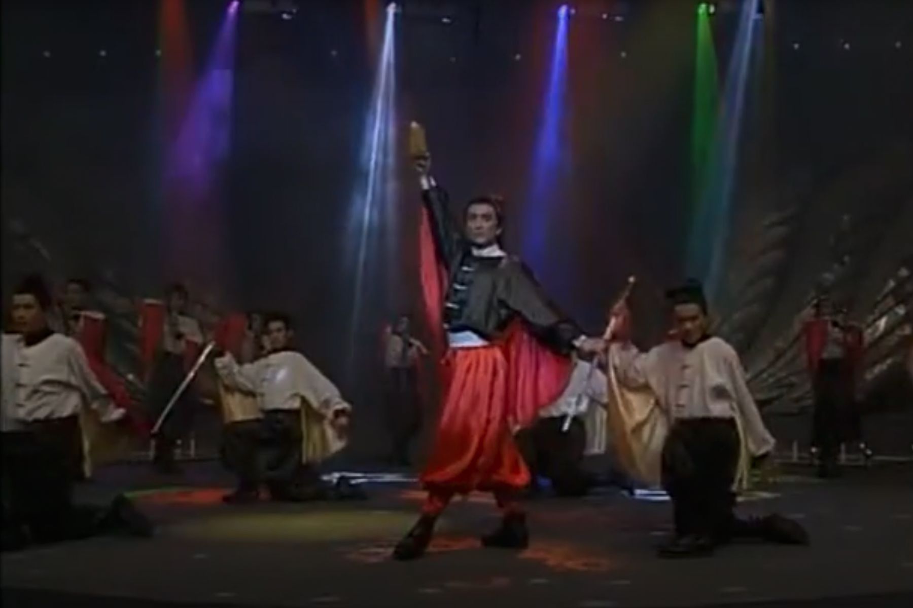 1993年,央视春晚上,以霹雳舞知名的舞者陶金领衔舞蹈《闻鸡起舞》。这段舞蹈被认为是将传统艺术与霹雳舞结合。(中央电视台1993年春节晚会视频截图)