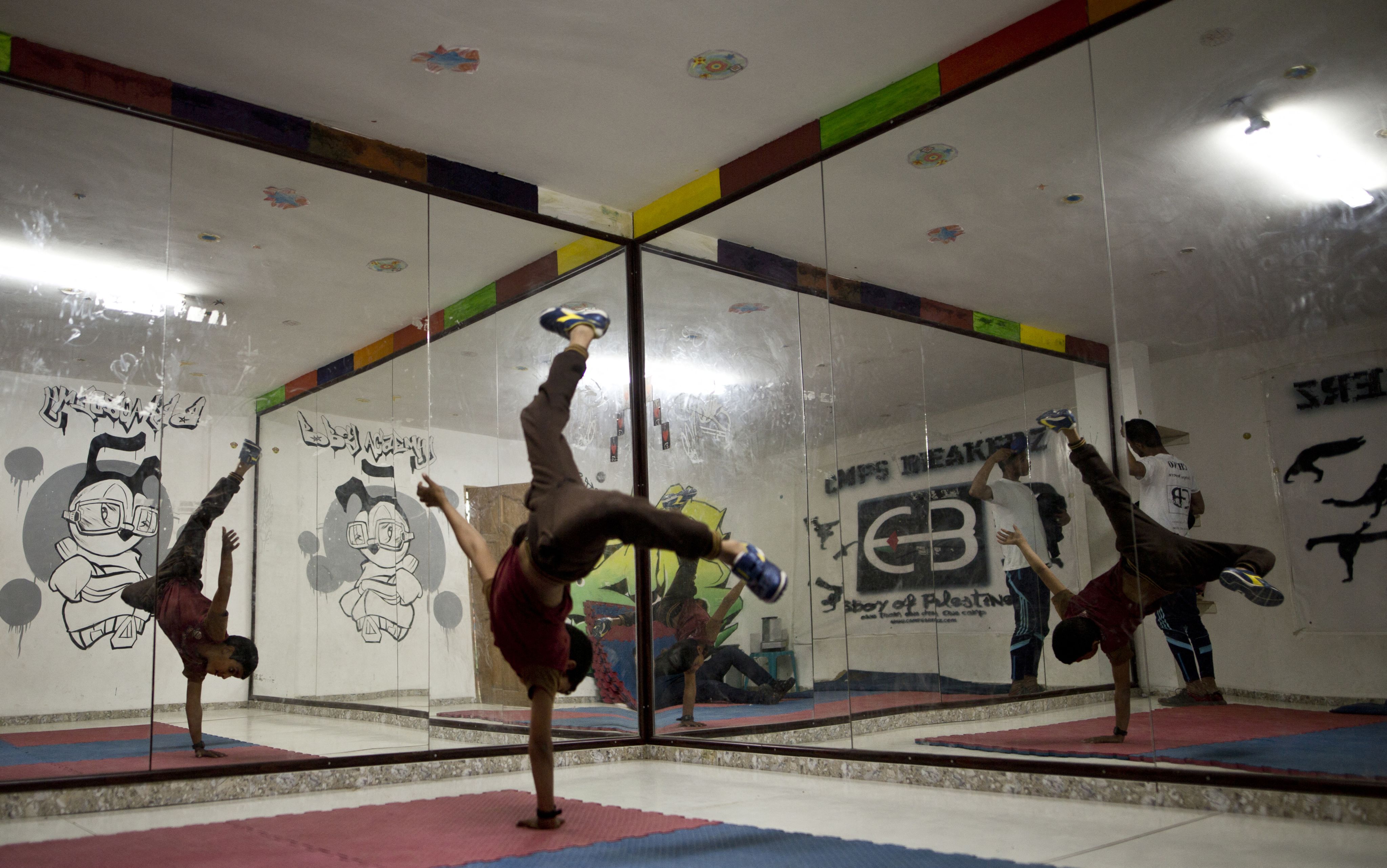 据媒体报道,在加沙的一些难民营中,许多年轻人热衷于霹雳舞。霹雳舞被视为帮助年轻人应对巴勒斯坦领土多年战争的一种方式。加沙教练Al-Ghraiz的一项训练计划,用舞蹈来帮助孩子们克服恐惧,释放压力。