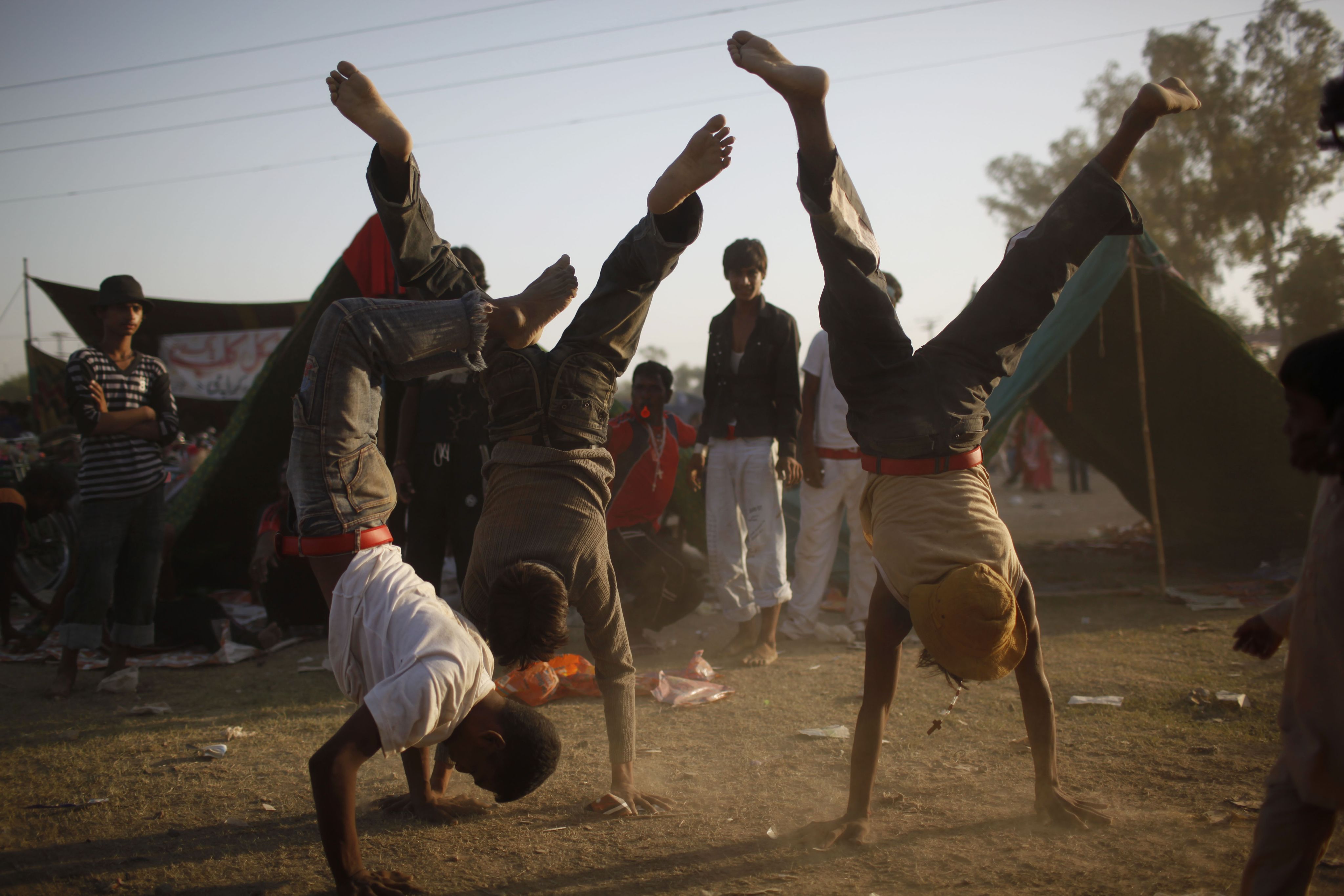 2009年9月5日,朝圣者在巴基斯坦谢胡普拉区马里亚马巴德村的节日期间表演霹雳舞。(AP / Alexandre Meneghini)