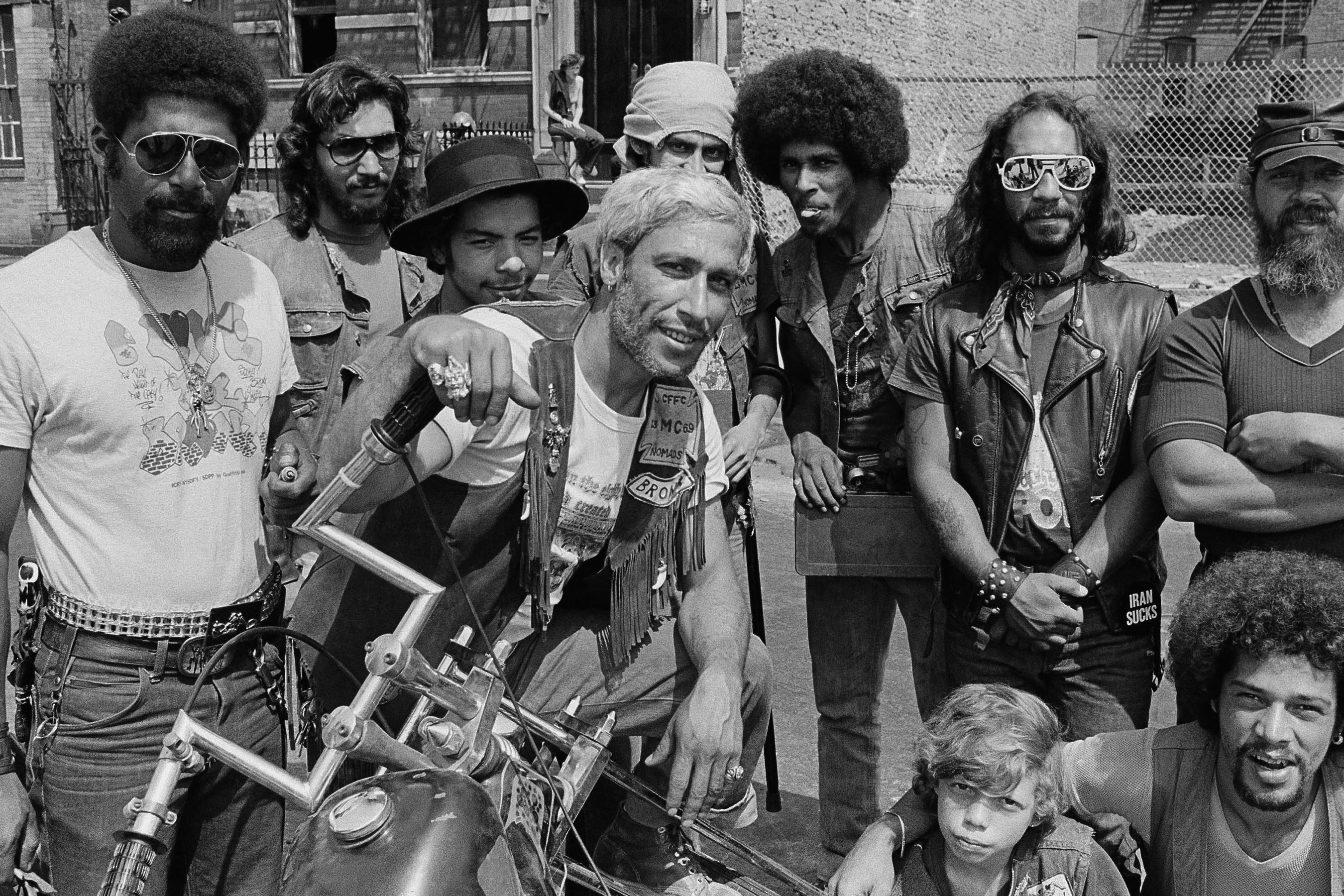 1980年7月22日,一头金发的弗林特与帮派成员在纽约市南布朗克斯区的一条街道上合影。弗林特和拥有300名成员的Ching-a-Lings帮派,是纽约当时著名的一个街头帮派。( AP / M. Reichenthal)