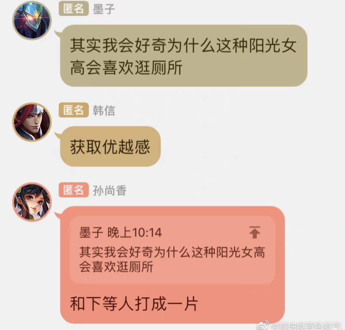 外部世界那些精致的理论和定义几乎无法在她们身上生效,当中产的女权主义正在讨论安全的“纯女社区”之可能时,厕妹们已经以激进的“厌男”语言对此进行了高纯度网络女性社群实践。有人在穷厕投稿,认为厕妹的“厌男”并不等于女权,而是仇富、自卑和低政治素养的产物,本质上“孙吧男”这种仇女的男性群体相同。