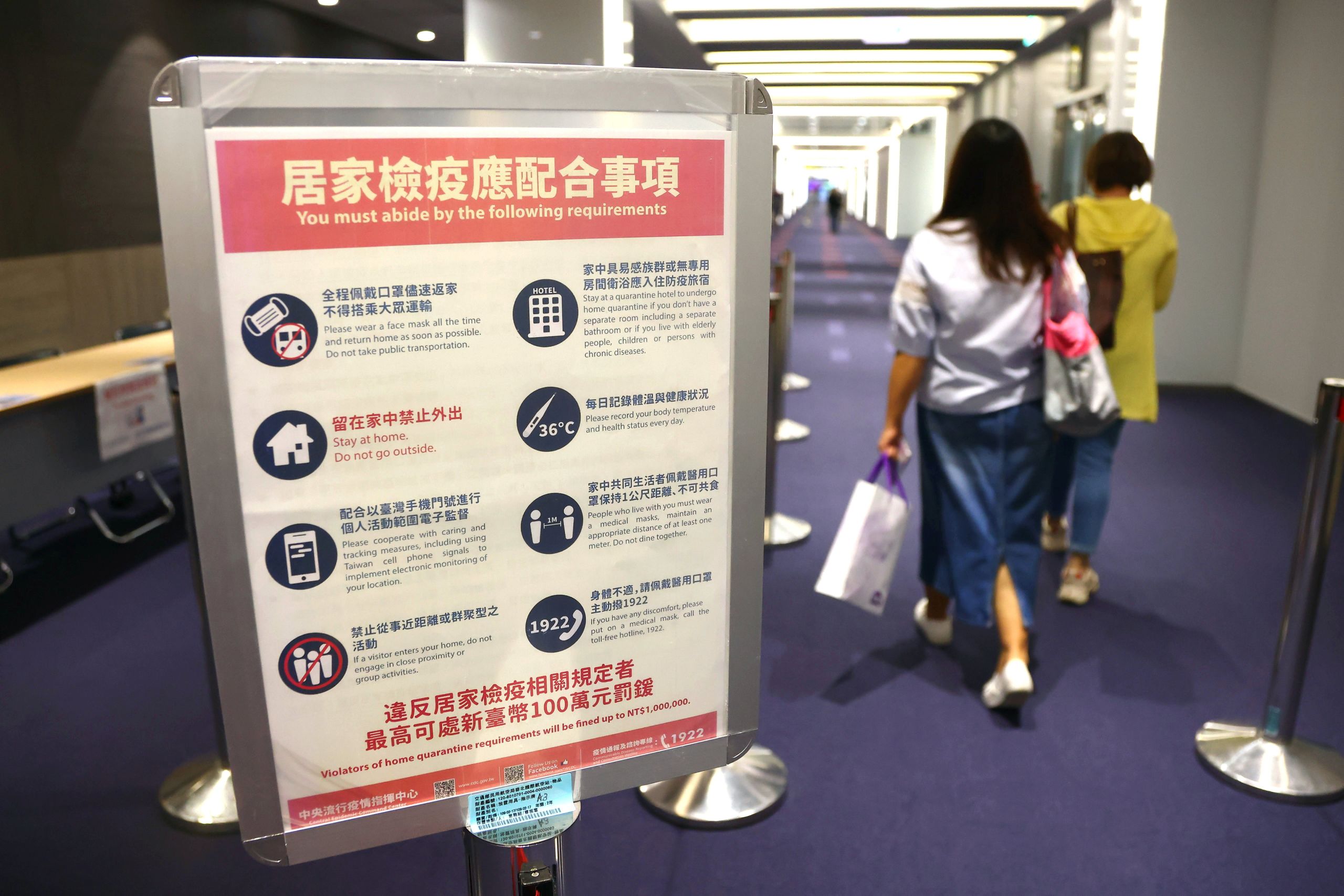 松山机场有关检疫措施的说明称入境者只需自主居家隔离14日(图片来源:路透社)