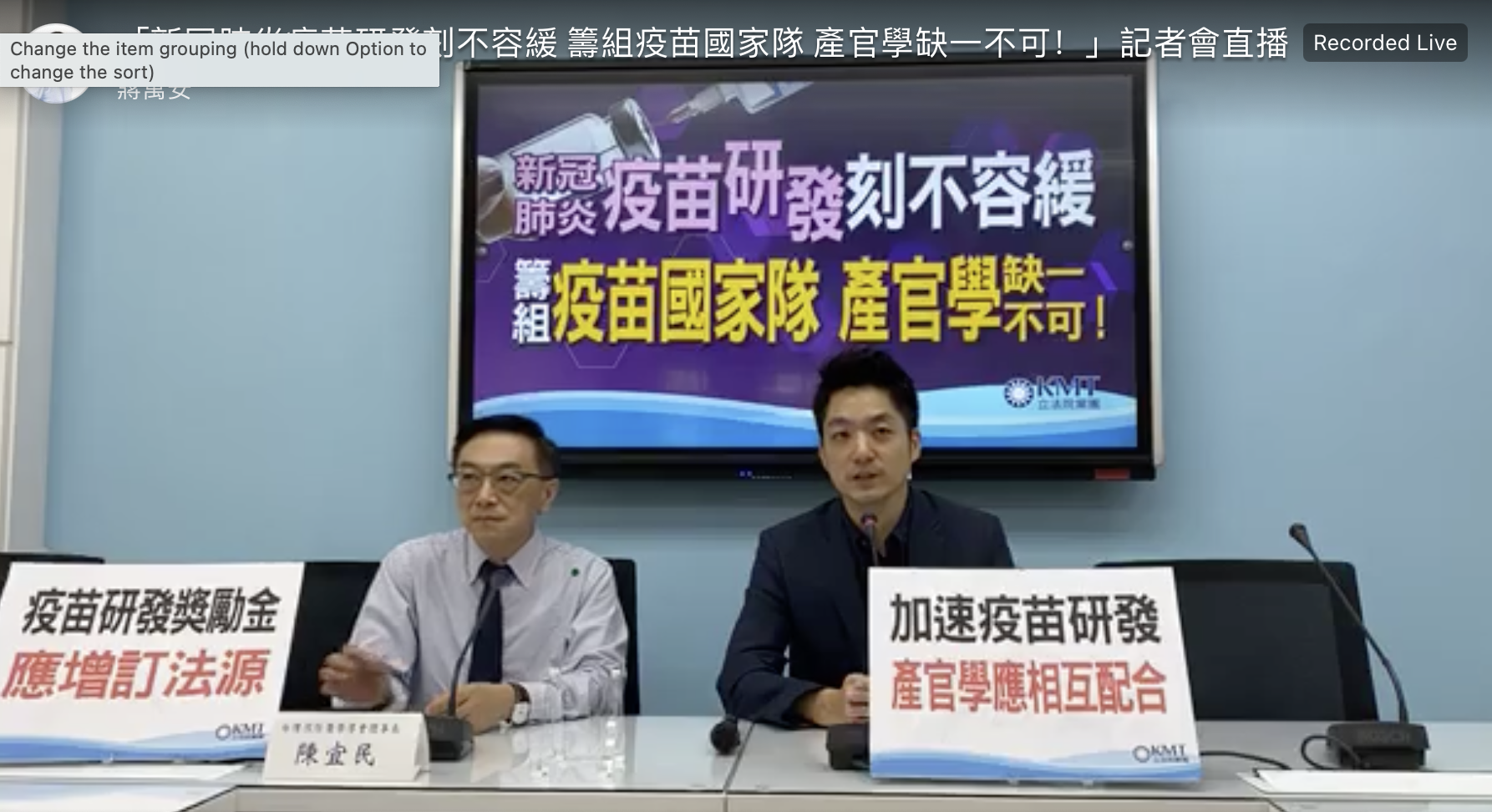 攻击台湾国产疫苗,俨然成为蓝营的政治正确。但矛盾的是,去年国民党立委蒋万安还开记者会敦促政府“组建疫苗国家队”。