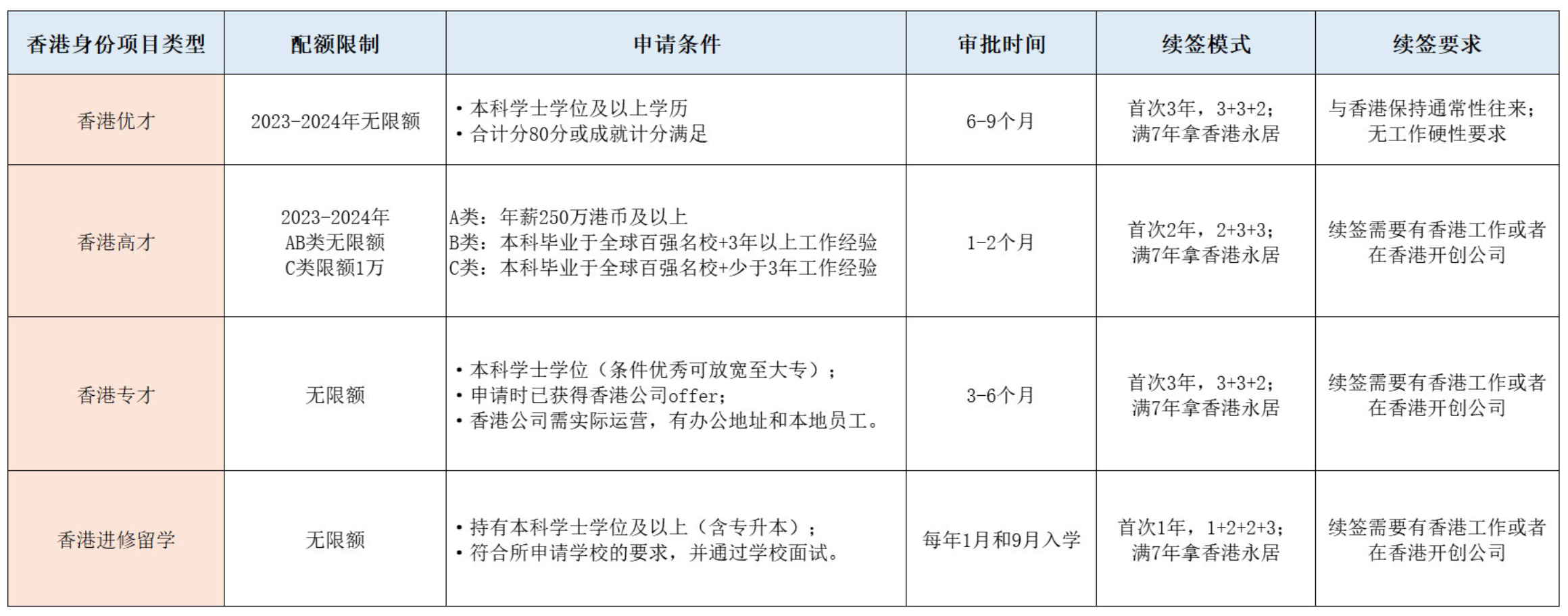 香港优才计划、香港高才通、香港专才、香港留学比较。(网络图片)