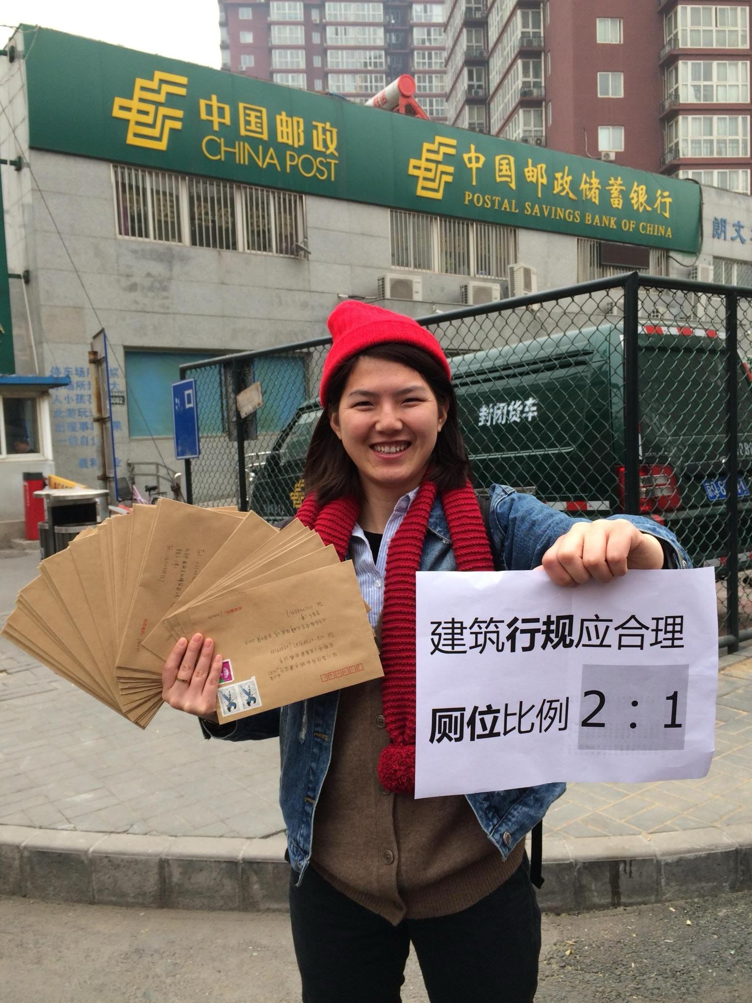 李麦子寄信人大代表呼吁调整建筑规范里的女性厕位。(图:作者提供)