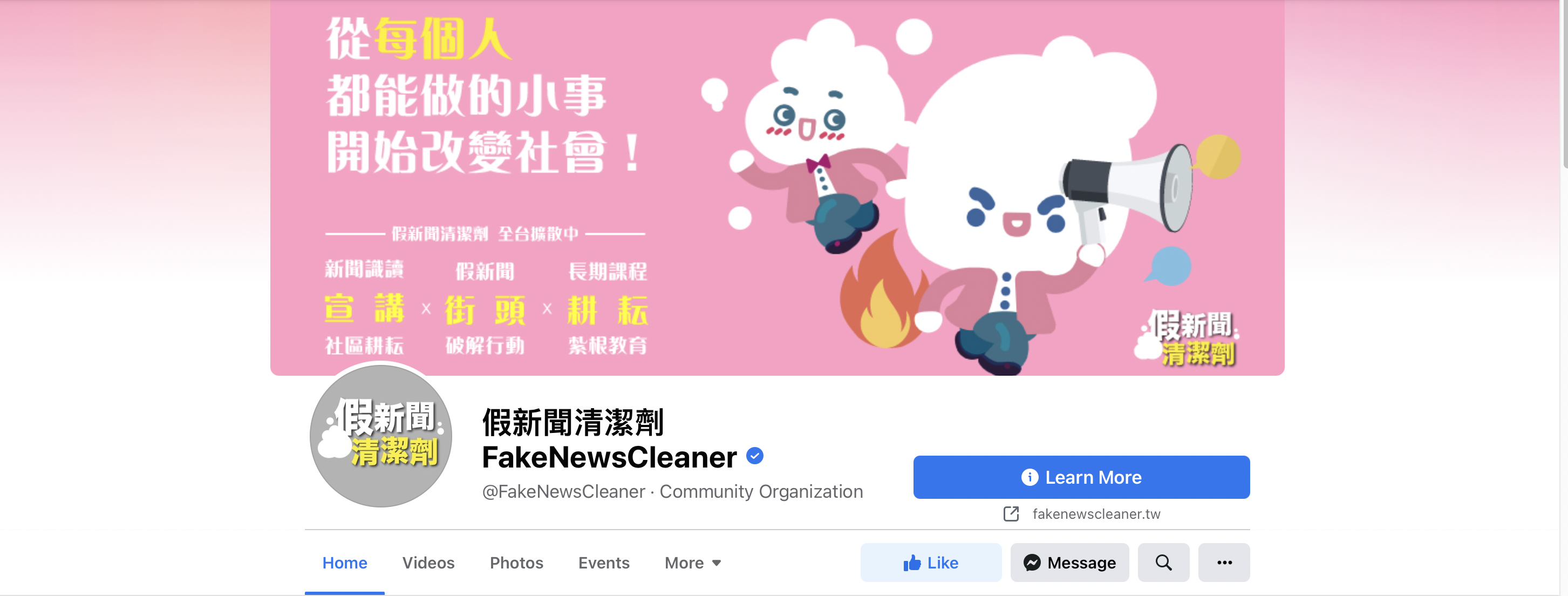 假新闻清洁剂的Facebook页面 (图片来源:假新闻清洁剂)