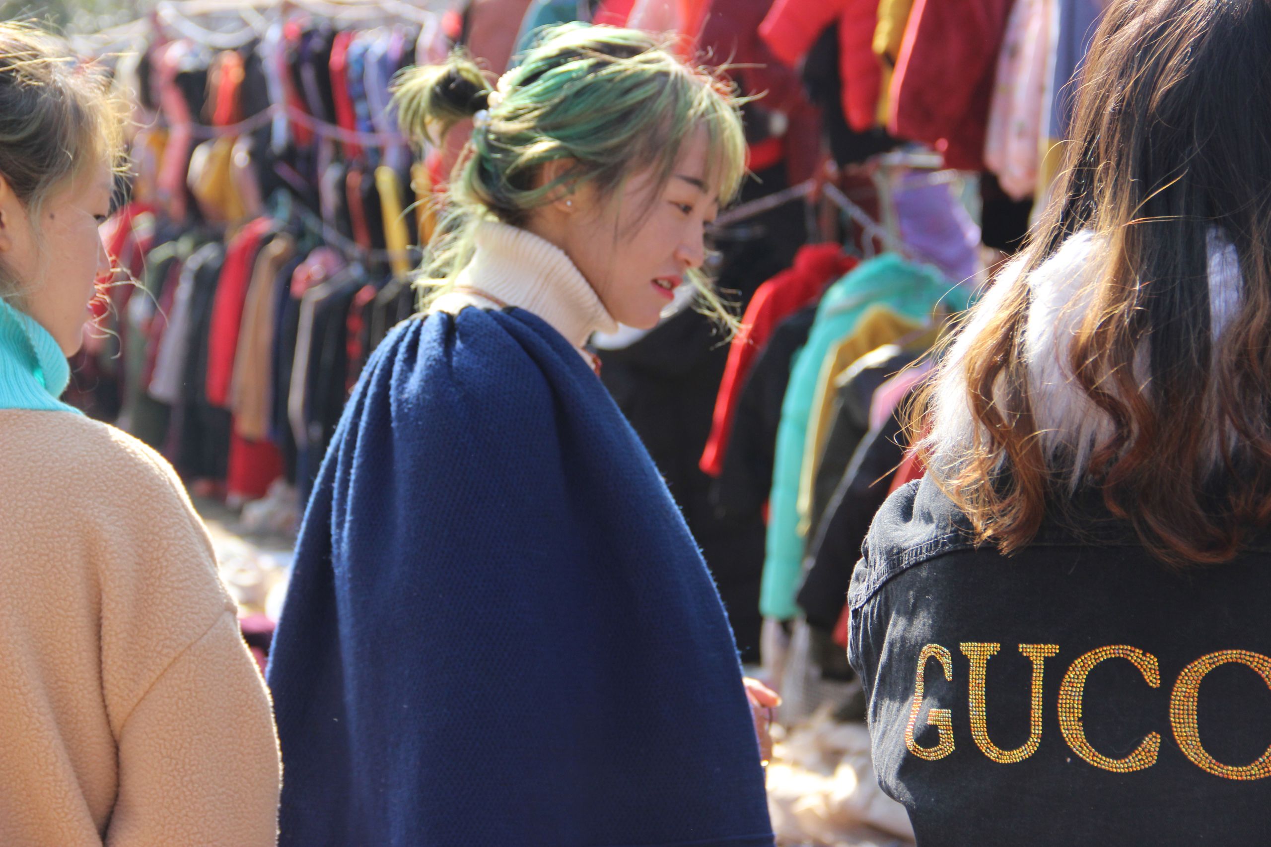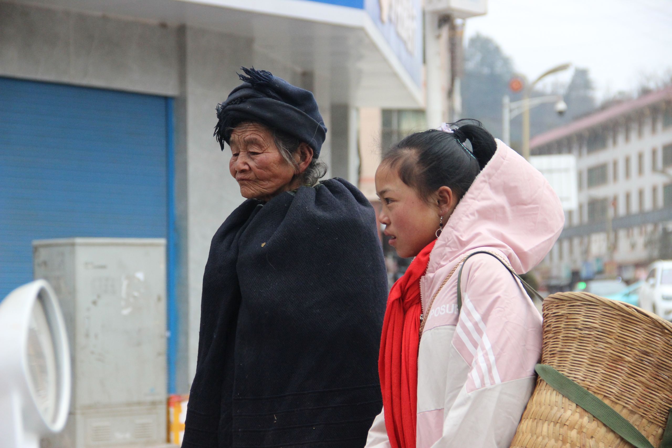 穿着入时的彝族少女在镇上赶场(赶集),带着从城里打工回来的痕迹。