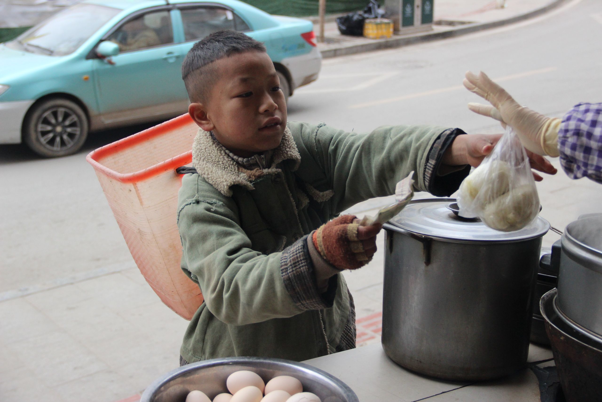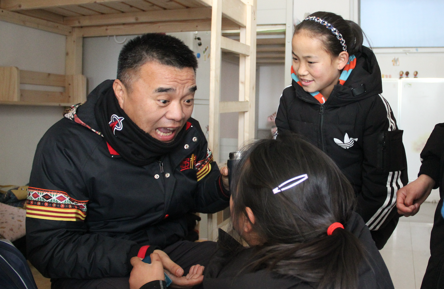 学校在另一座山脚下,从家里望不到。山路崎岖,习惯负重走山路的孩子仍需一小时到校,冬天会增加走路时间。“有一次下了大雪,许多低年级的孩子一路‘摔’着来学校,到学校都眼泪汪汪”, 友阿木说完咯咯笑。