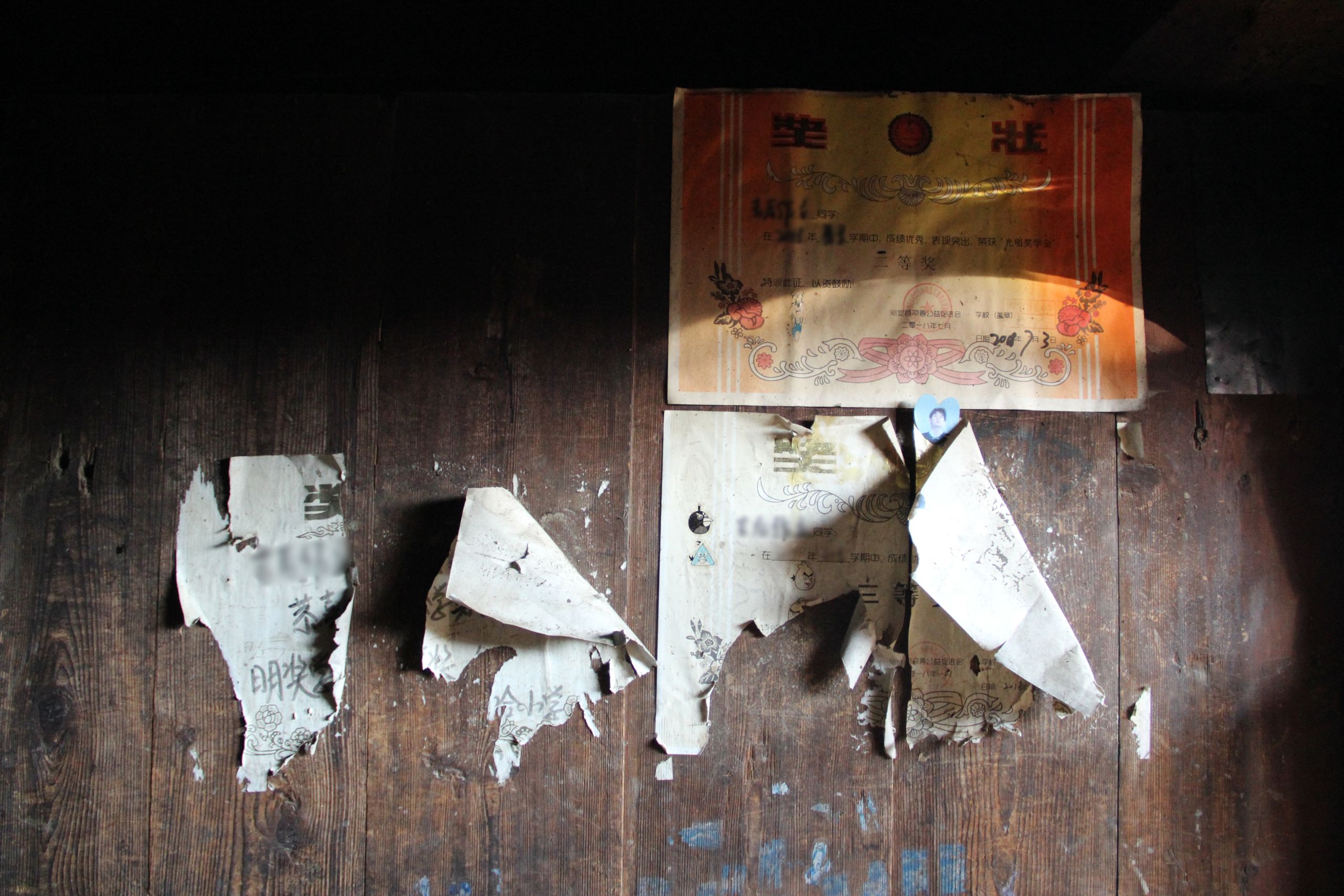 木门上贴着三张友阿木得“三好学生”的奖状,两张已经破损。友阿木说这是弟弟嫉妒她成绩好“撒气”所致。