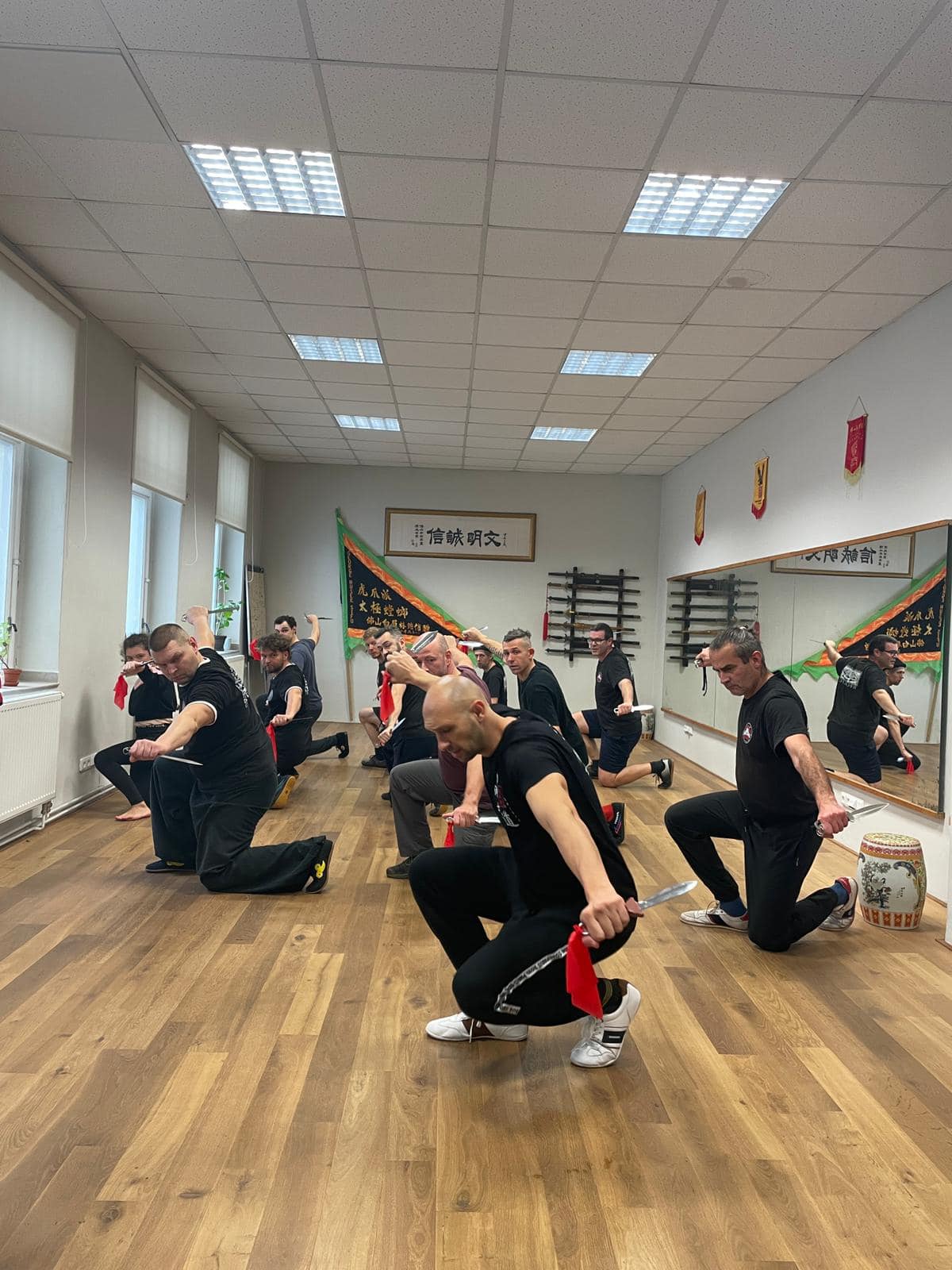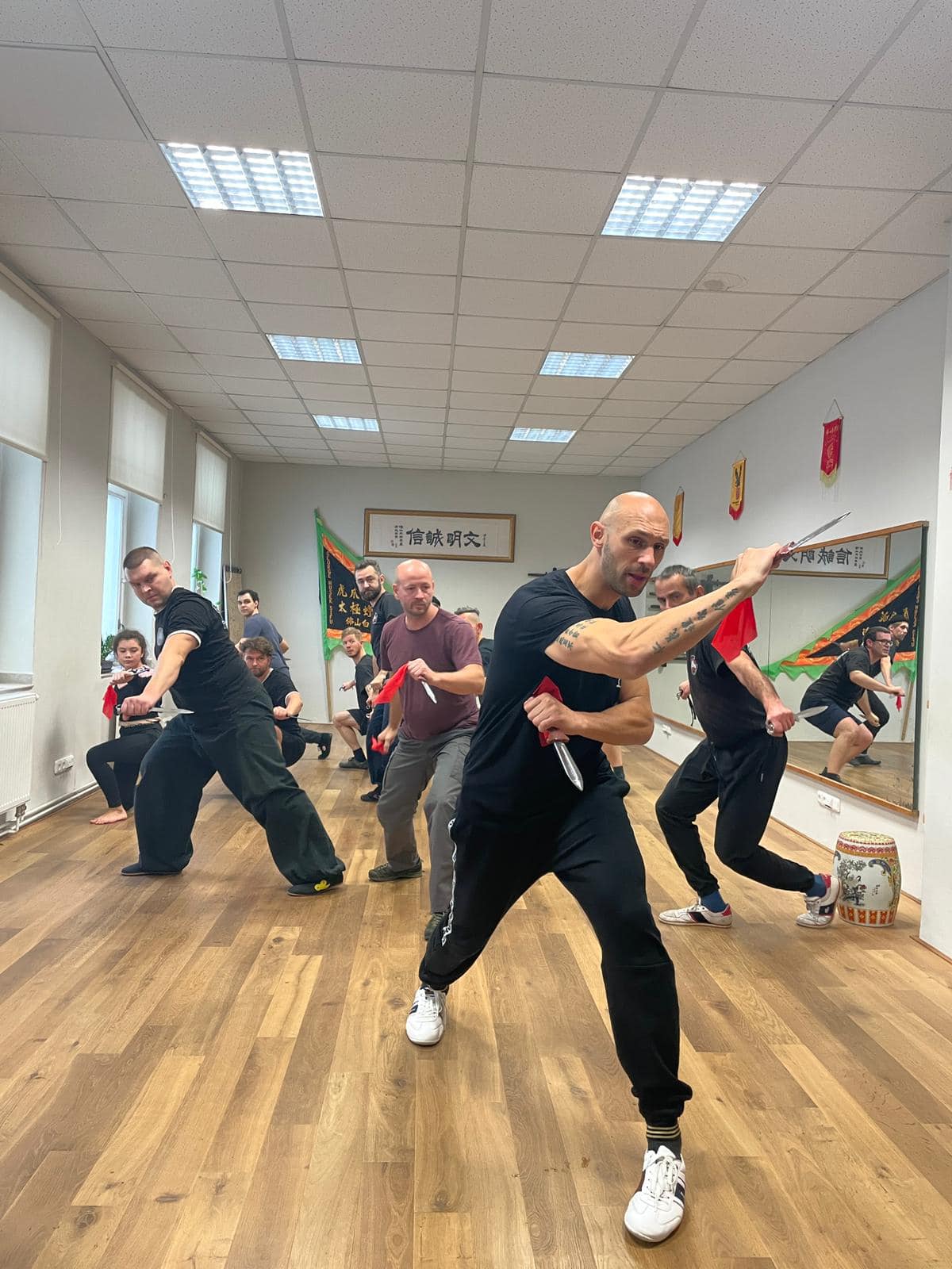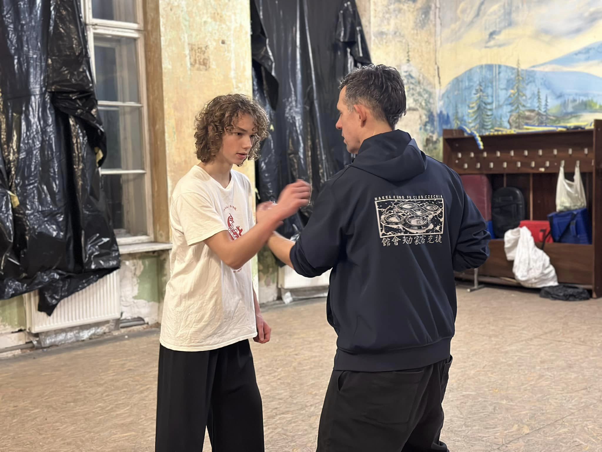 “这里是George学武归来捷克后,他徒弟帮他开的武馆;我从中国回来之后也在这边教佛山白眉(拳),也有其他师傅教太极螳螂、七星螳螂、咏春。”Lukáš说。纪录片《 欧洲中心的功夫》(《 Kung-fu v srdci Evropy》)中,Lukáš 已故的好友George曾经提及,布拉格之春翌年(即1969年),反苏联示威星火不熄,在一场游行中,他遭亲俄的捷克斯洛伐克民兵在镇压时,被子弹射穿肩膀,使他右臂瘫痪,George视此为警号,辗转流亡美国,听闻学功夫也许能治好手患,于是往唐人街拜师学艺,自1970年起毕生追随恩师Paul Eng习武,直至捷克民主化后才归国。