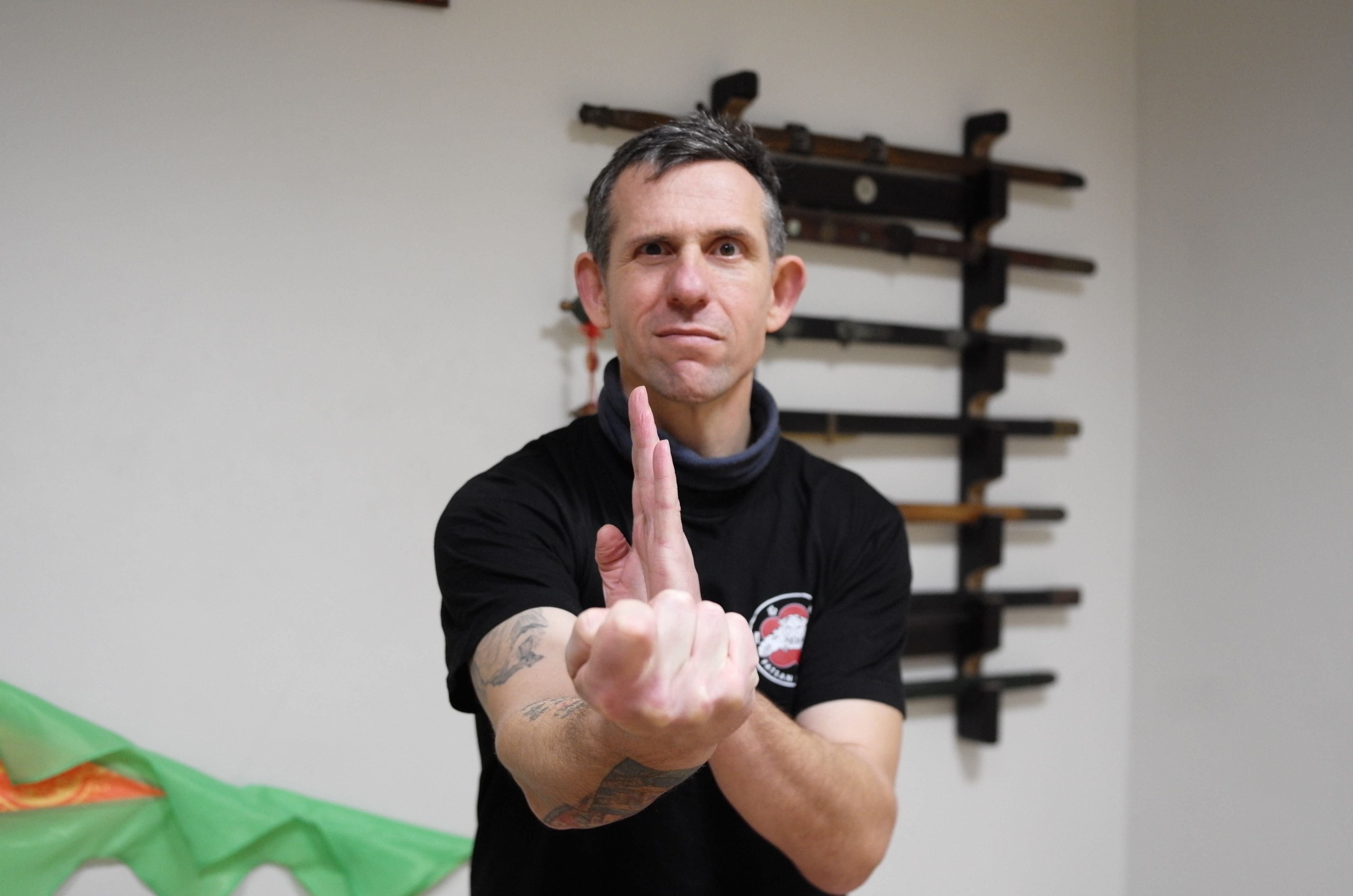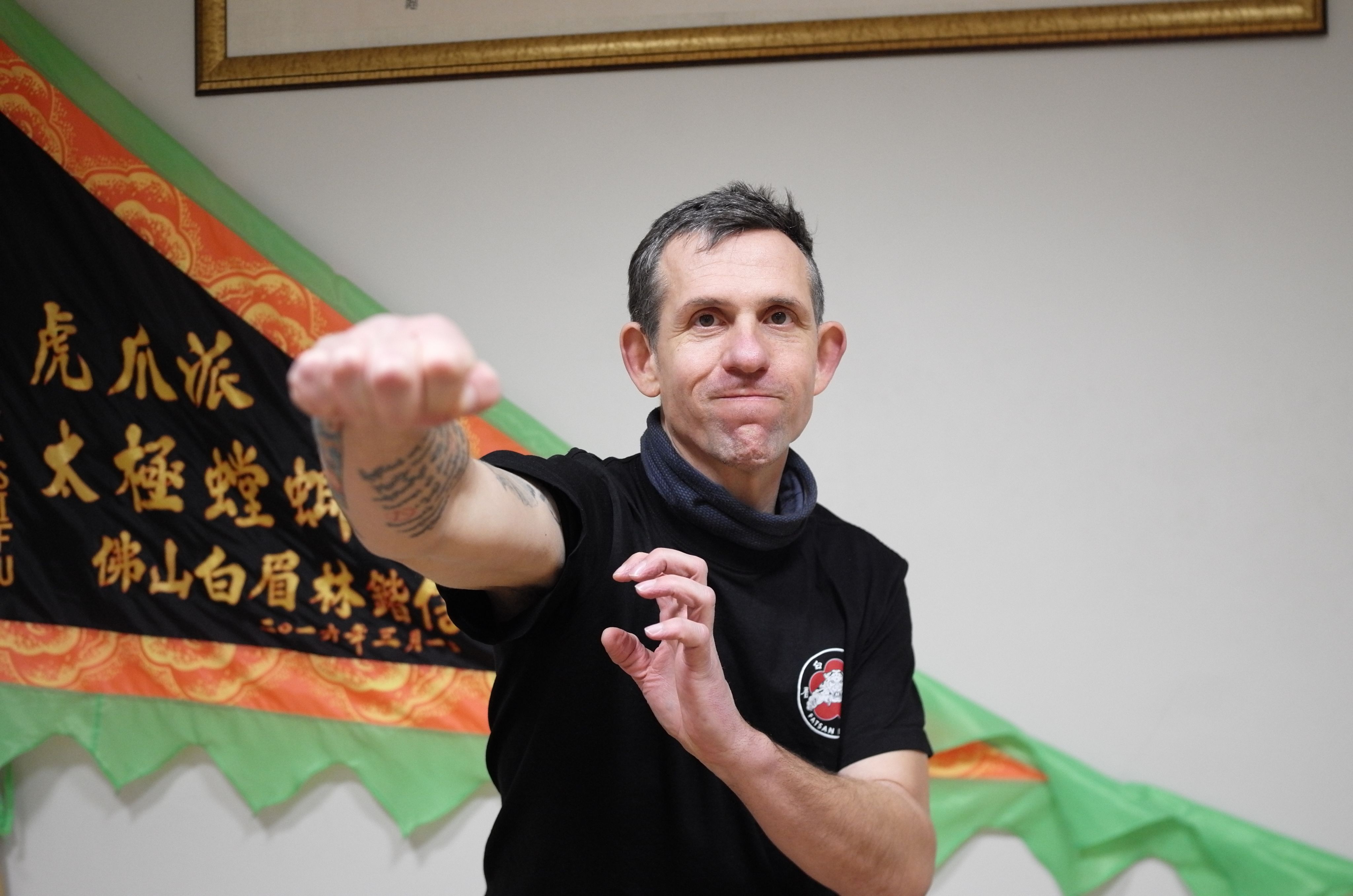 “当我看见一些坏的东西,我会本能想反抗,所以我加入了反法西斯主义运动组织(Anti-fascist Action;简称 Antifa),追撃新纳粹主义份子。”Lukáš 形容Antifa 对抗新纳粹的方式,就是以暴制暴,“要辨认新纳粹主义份子,通常寻找剃光头、穿轰炸机夹克(Bomber jacket)、着黑色Dr. Martens 配白色鞋带的人,这象征他们追随白人至上主义——这有点像次文化;我们会组队,拿着铁棍在他们常驻的酒馆外等候,他们一出门就围上去攻击。”Lukáš 苦笑说,但捱打的时候更多,所谓狙撃其实是为反撃,“在我们那个城市,他们有人数优势,我们通常爱听庞克音乐,所以他们也会来演唱会门口打人,走在街上也有机会被打,为了自卫,于是我也开始学功夫。”这段经历让Lukáš开始接触咏春,练习方法十分硬核,实用主义至上,“你站在一个圆的中央,其他学员会从四方八面涌来,你就用学到的反搏。”日复一日,Lukáš厌倦了你争我斗恶循环,退出Antifa,“我不想变得跟新纳粹一样。”