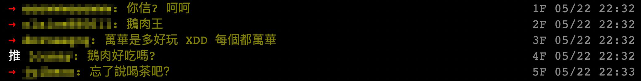 “万华=摸摸茶=色情”的等式正式成立,即便某位屏东确诊者宣称自己只是搭高铁北上万华吃鹅肉,也被网友质疑讪笑,“真的只是吃鹅肉吗?”、“什么鹅肉这么好吃?”这波风潮热度之高,甚至引发外媒注意,如 Bloomberg 便在 5 月 18 日便发表了以〈Sexy Tea, the Lion King and Taiwan's Lost Innocence〉为题的文章。