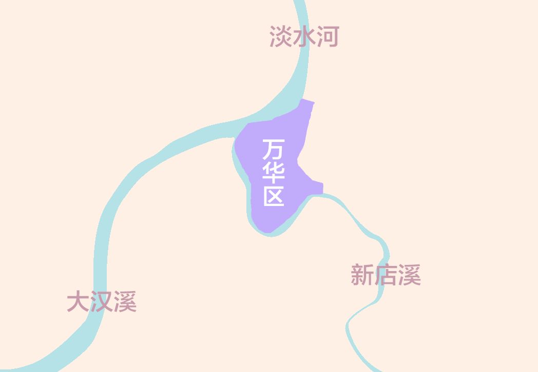 万华区位于大汉溪、新店溪及淡水河交汇处
